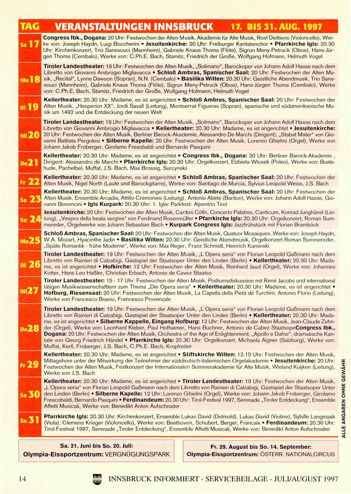 INNSBRUCK INFORMIERT - SERVICEBEILAGE - JULI/AUGUST 1997