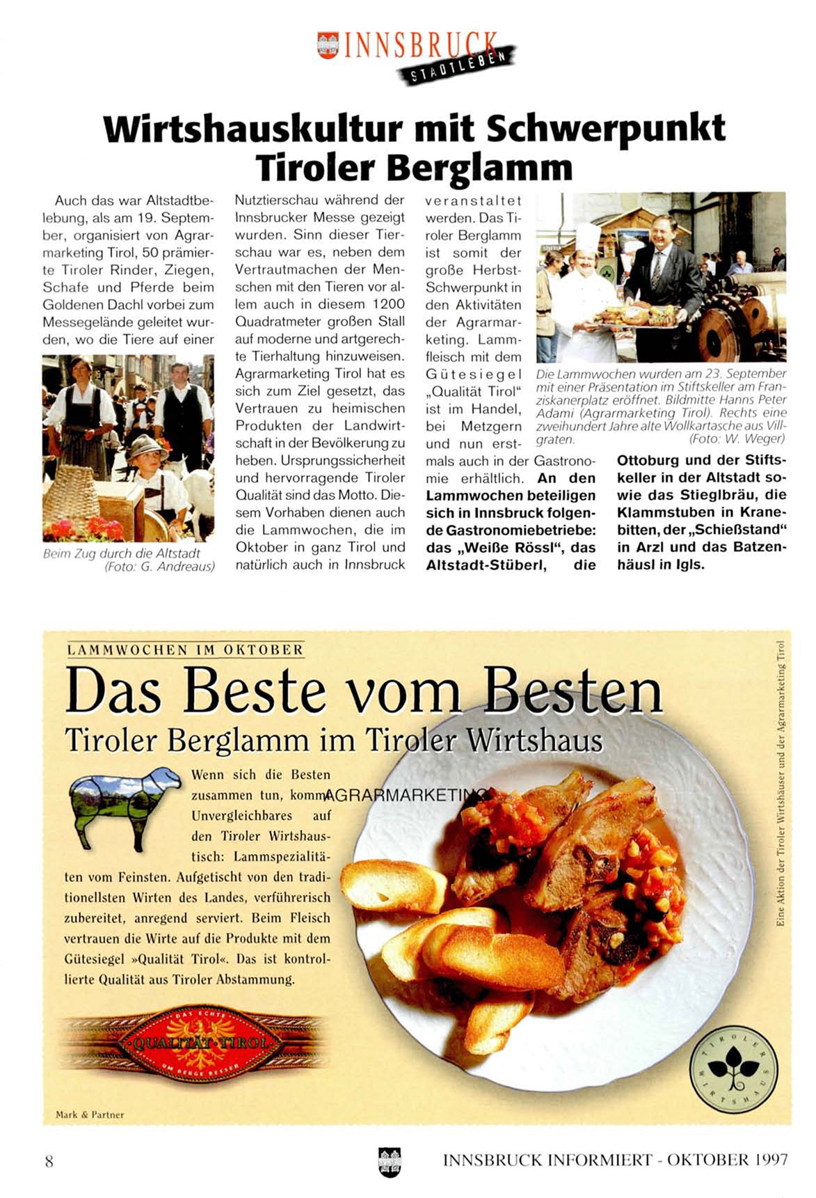 Auch das war Altstadtbelebung, als am 19. September, organisiert von Agrarmarketing Tirol, 50 prämierte Tiroler Rinder, Ziegen,