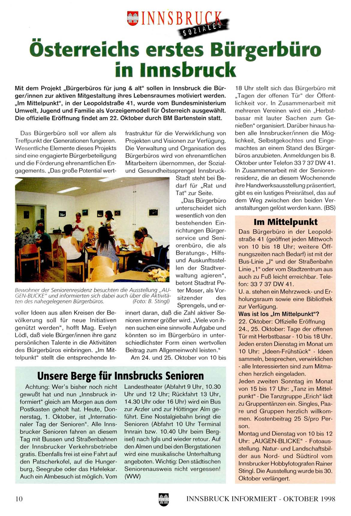 ,,lm Mittelpunkt", in der LeopoldstraBe 41, wurde vom Bundesministerium