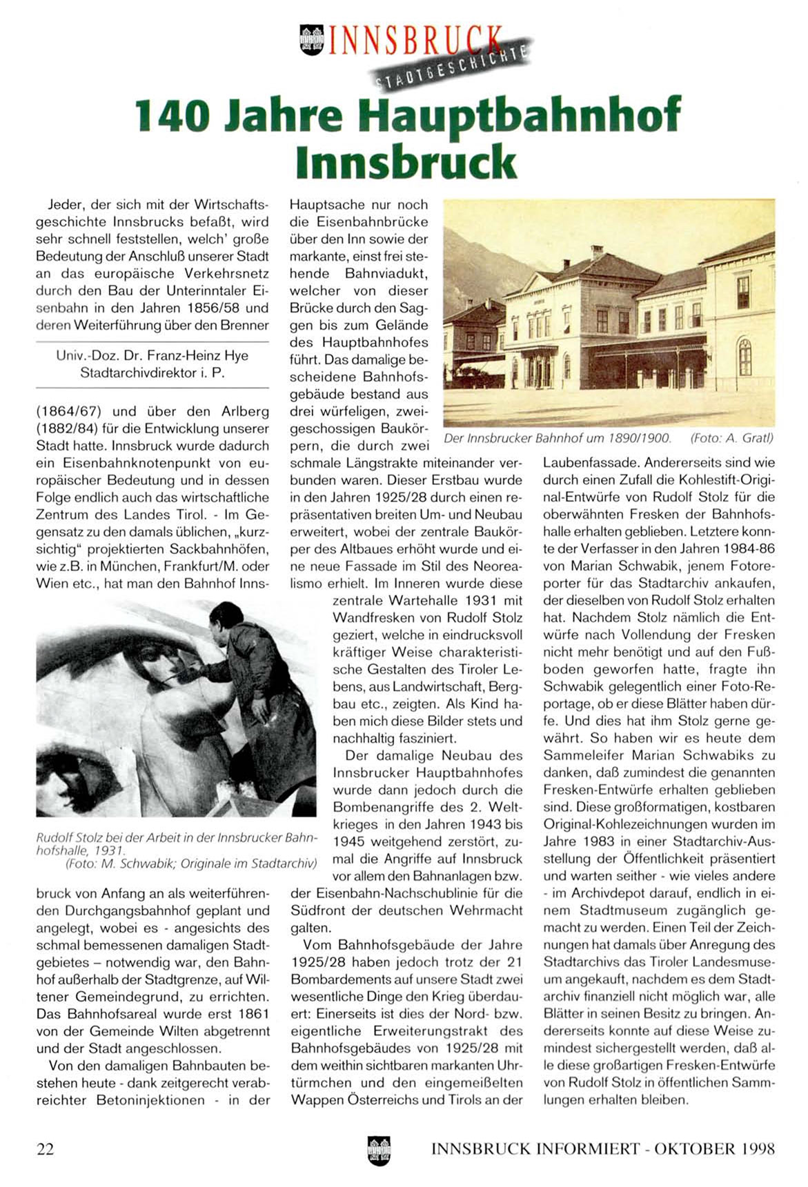 Innsbrucker Hauptbahnhofes danken, daB zumindest die genannten