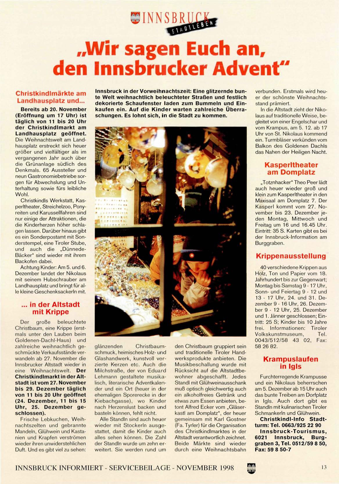 INNSBRUCK lNlORMIhRT SliRVICliBlilLAGli - NüVLiMBIiR 1998