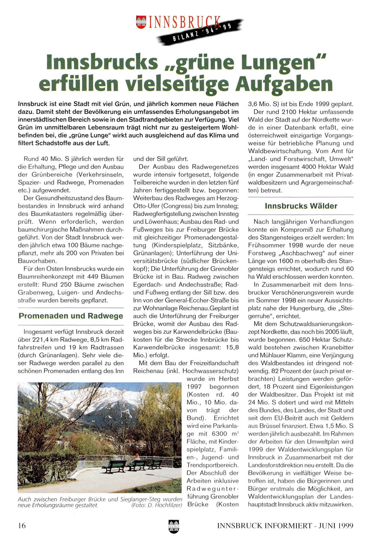 baumchirurgische Maßnahmen durchgeführt. Von der Stadt Innsbruck werden jährlich etwa 100 Bäume nachgepflanzt, mehr als 200 von Privaten bei