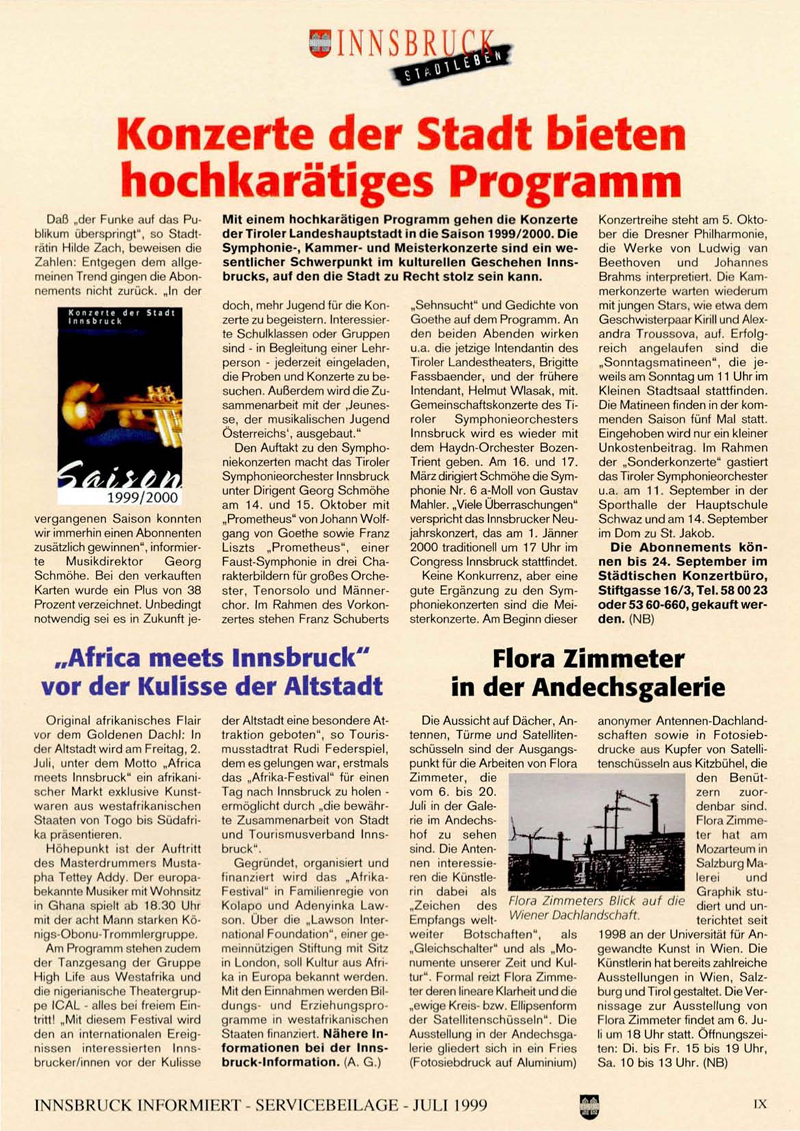 Symphonie-, Kammer- und Meisterkonzerte sind ein wesentlicher Schwerpunkt im kulturellen Geschehen Innsbrucks, auf den die Stadt zu Recht stolz sein kann.