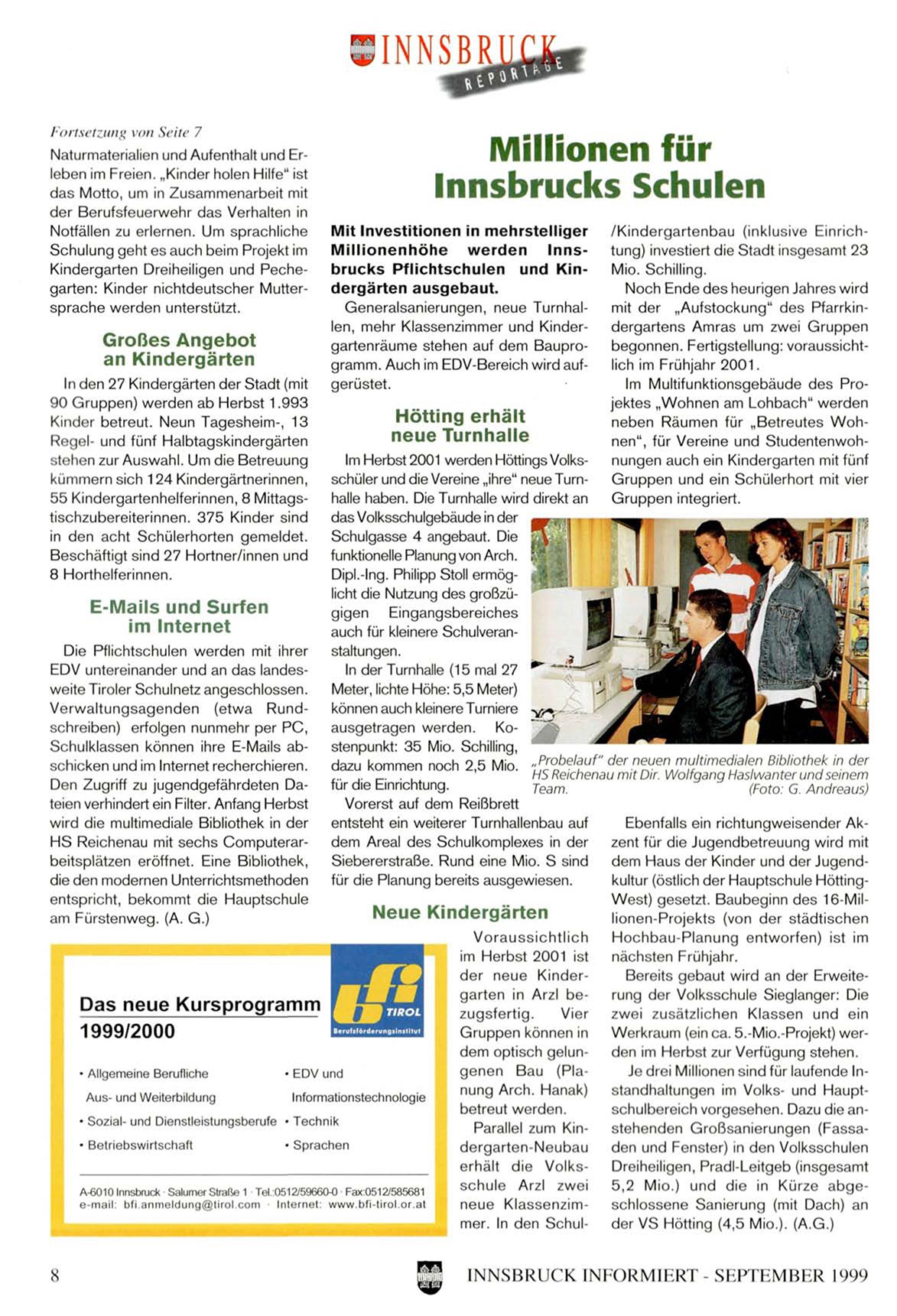 Innsbrucks Pflichtschulen und Kindergärten ausgebaut.