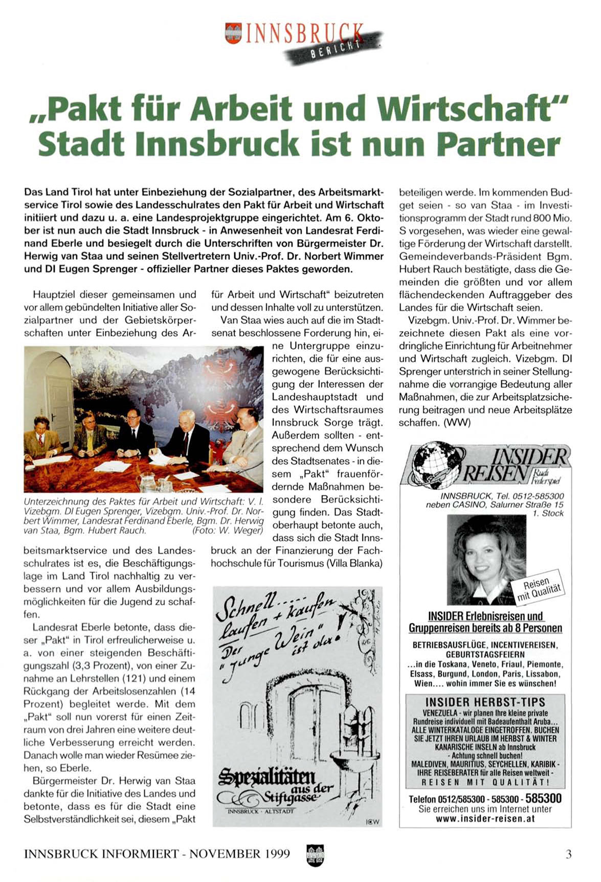 initiiert und dazu u. a. eine Landesprojektgruppe eingerichtet. Am 6. Oktober ist nun auch die Stadt Innsbruck - in Anwesenheit von Landesrat Ferdinand Eberle und besiegelt durch die Unterschriften von Bürgermeister Dr.