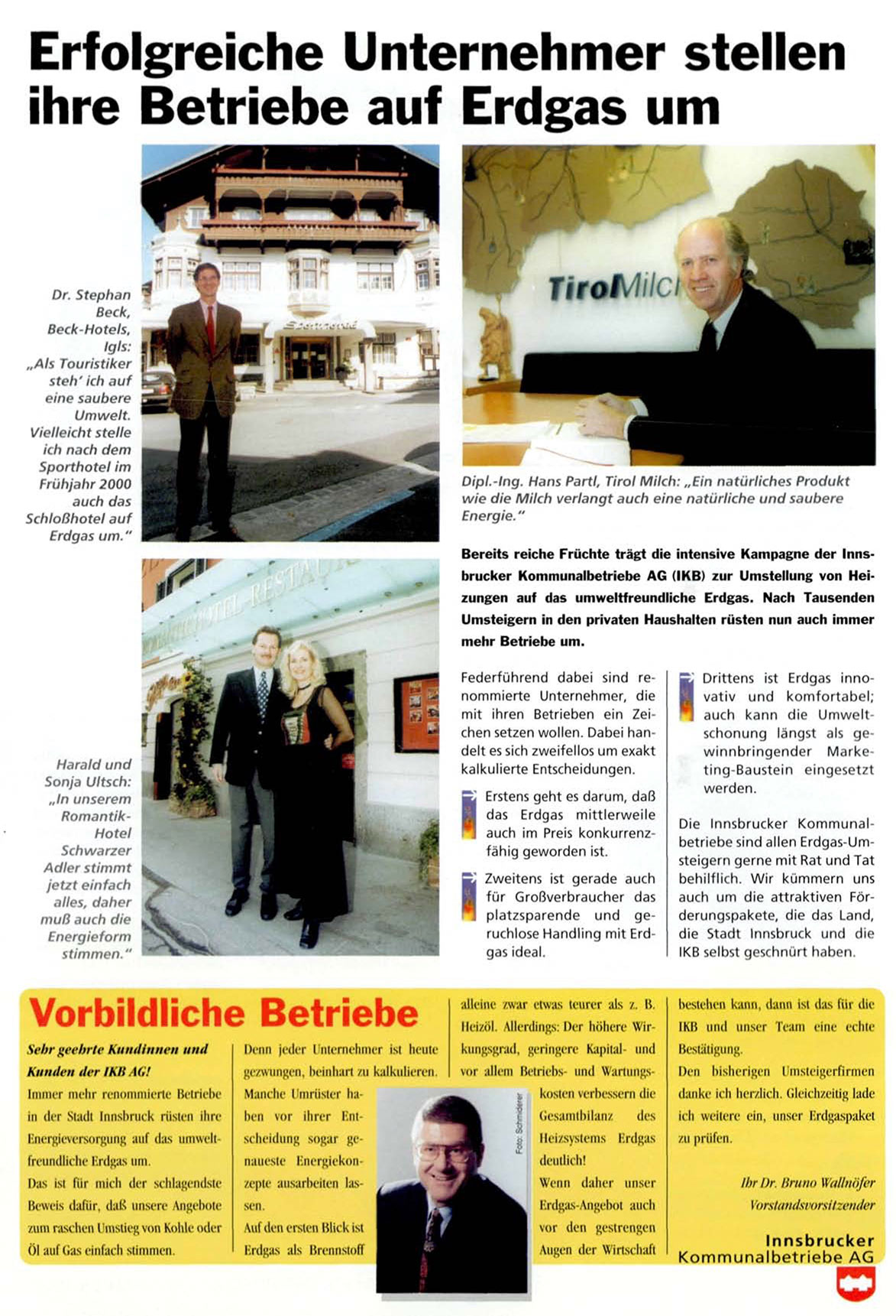 Bereits reiche Früchte trägt die intensive Kampagne der Innsbrucker Kommunalbetriebe AG (1KB) zur Umstellung von Heizungen auf das umweltfreundliche Erdgas. Nach Tausenden