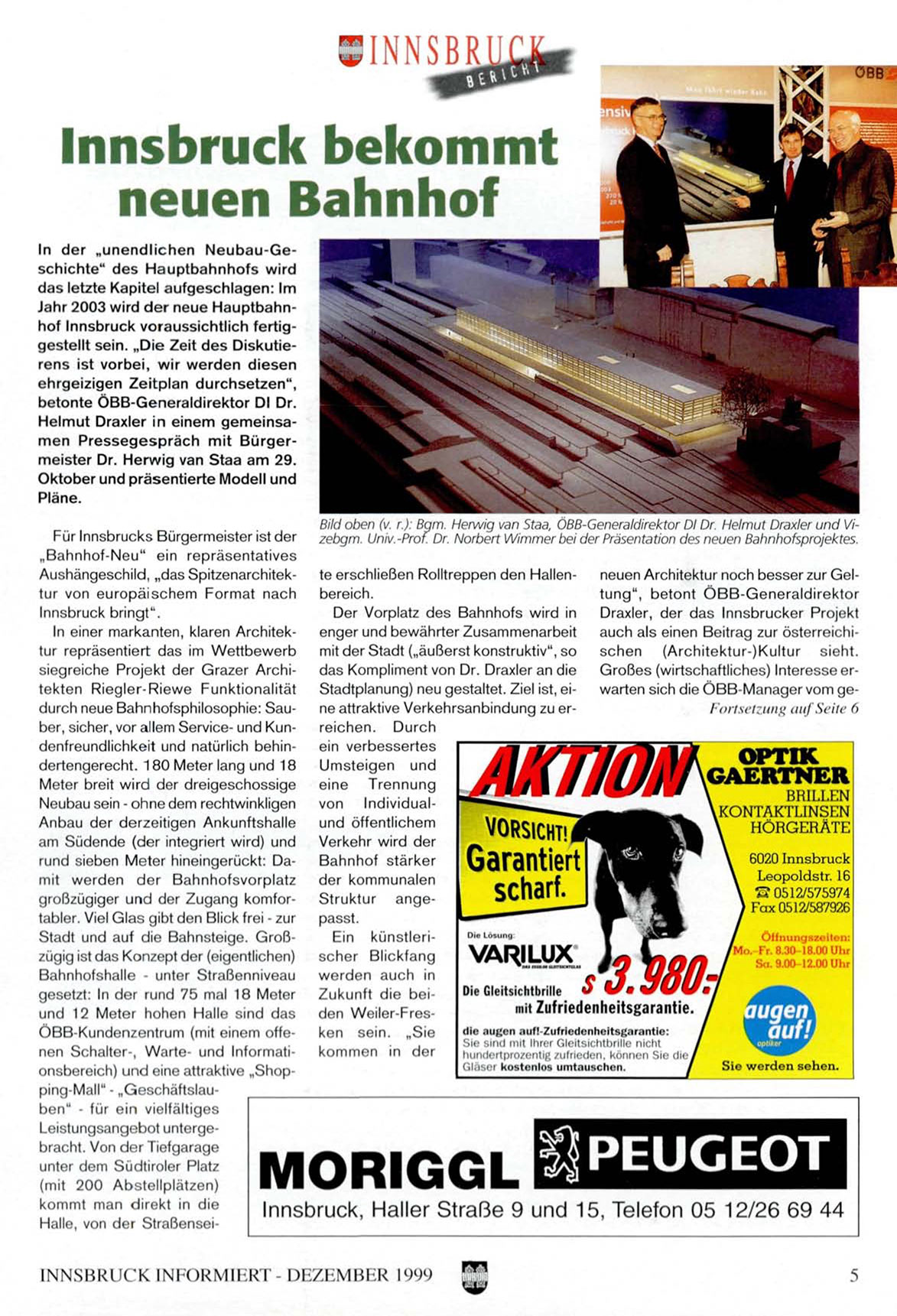 Bild oben (v. r.): Bgm. Herwig van Staa, ÖBB-Generaldirektor DI Dr. Helmut Draxler und Vi-