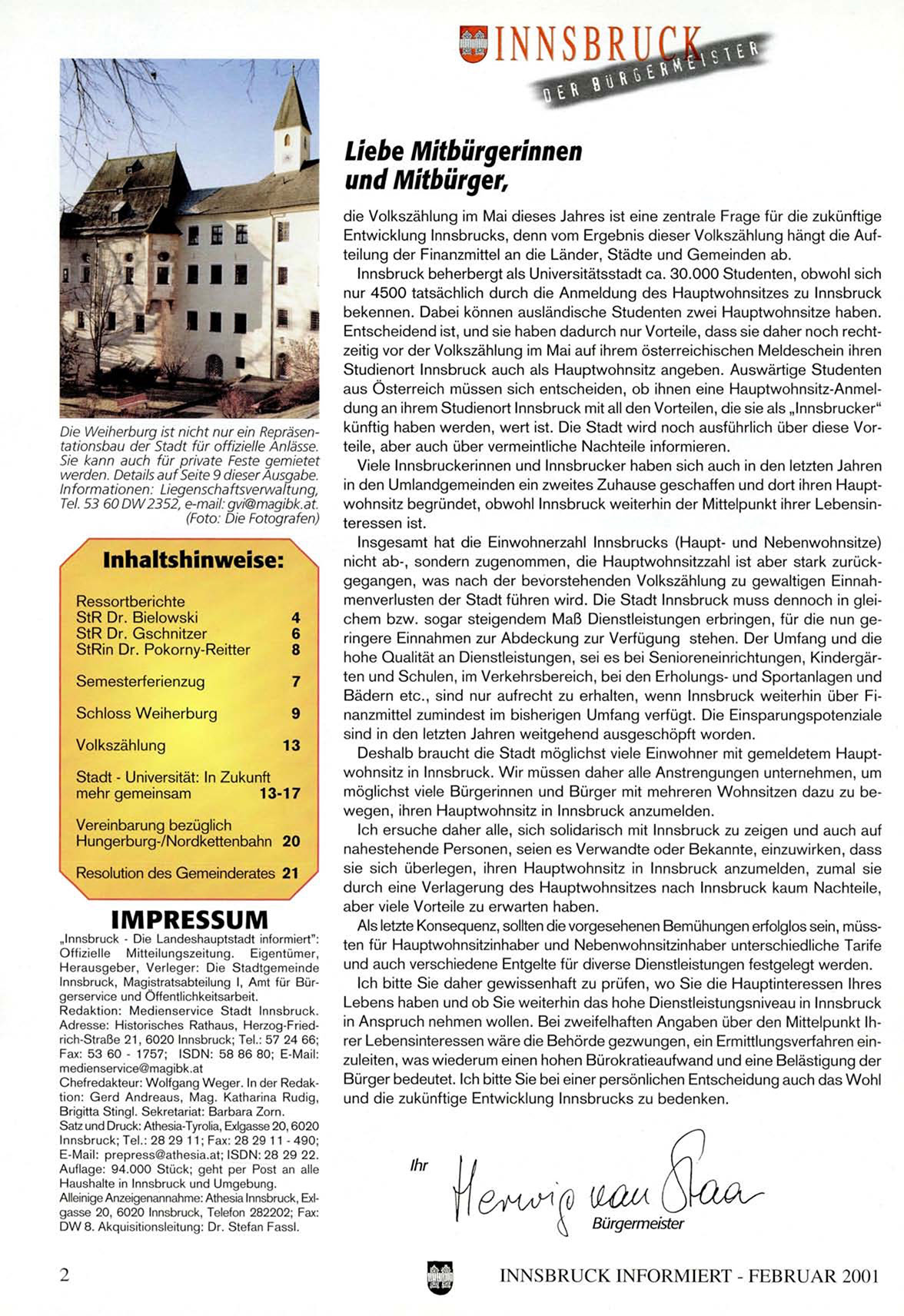 INNSBRUCK INFORMIERT - FEBRUAR 2001