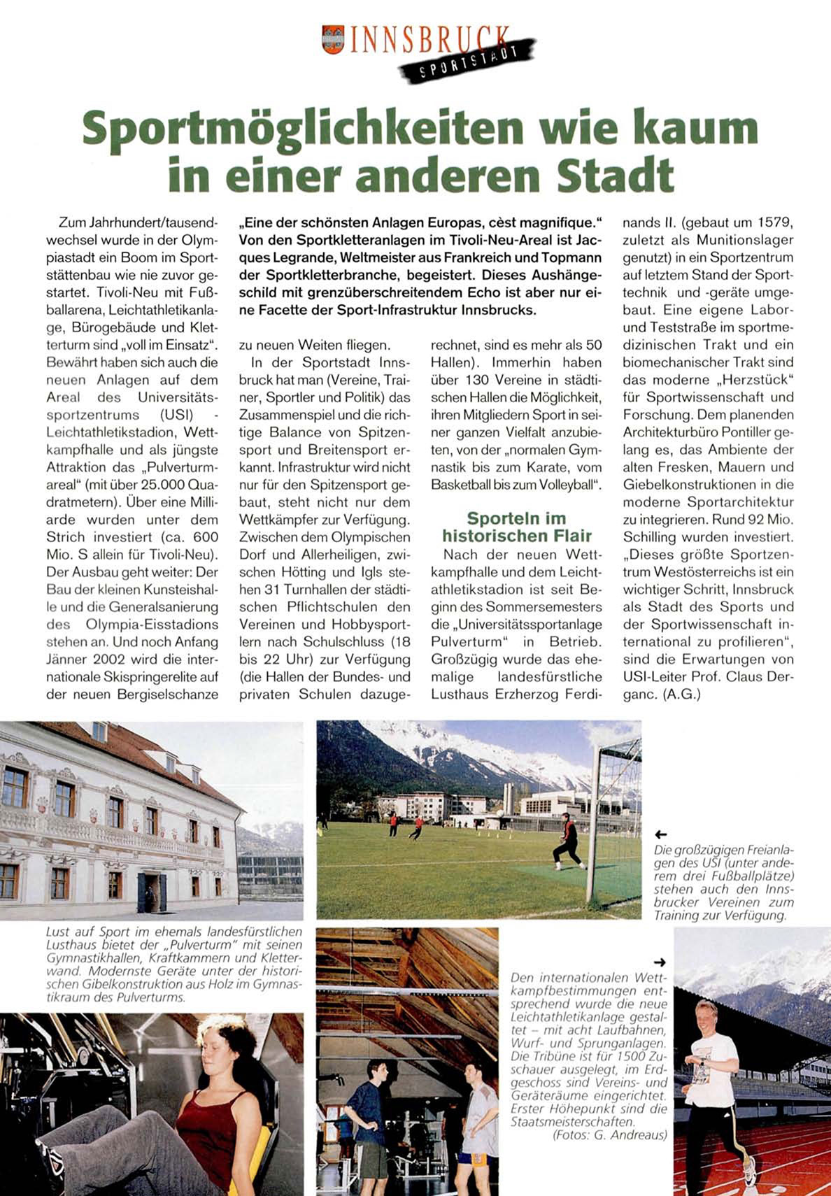 Zum Jahrhundert/tausendwechsel wurde in der Olympiastadt ein Boom im Sportstättenbau wie nie zuvor gestartet. Tivoli-Neu mit Fußballarena, Leichtathletikanlage, Bürogebäude und Kletterturm sind „voll im Einsatz".