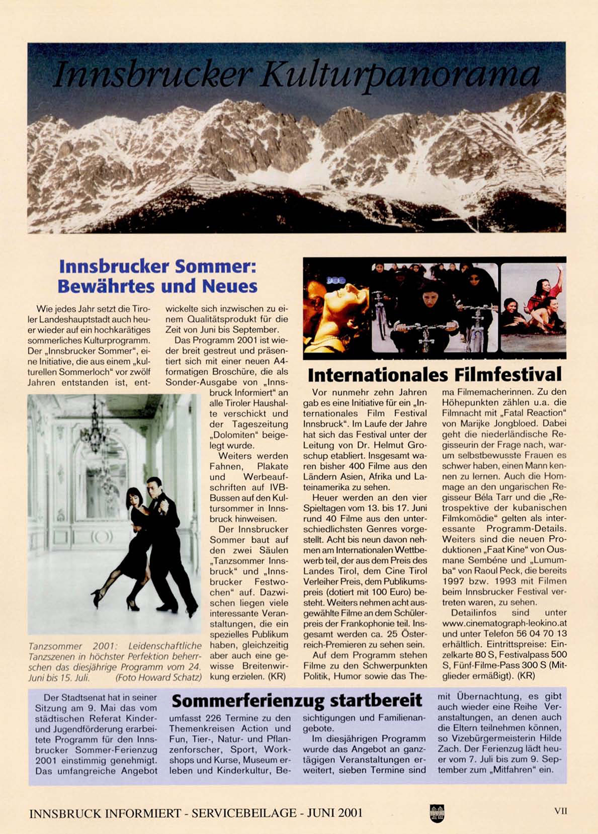 INNSBRUCK INFORMIERT - SERVICEBEILAGE - JUNI 2001