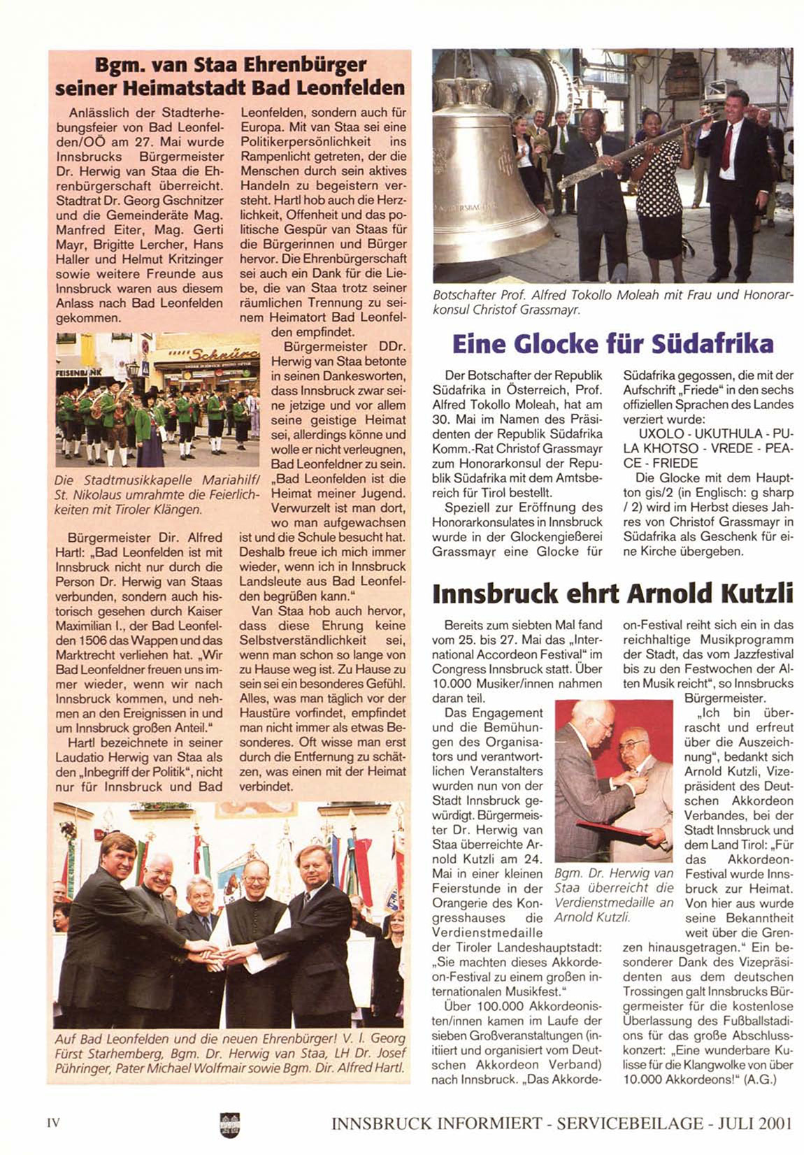 I N N S B R U C K INFORMIERT - S E R V I C E B E I L A G E - JULI 2001
