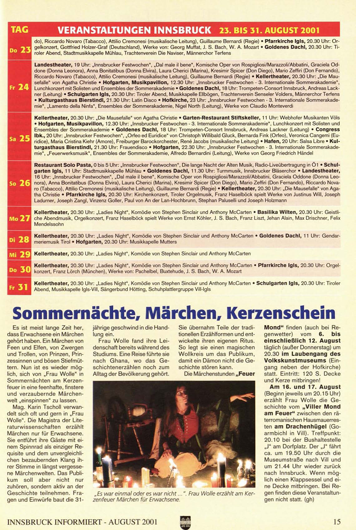 VERANSTALTUNGEN INNSBRUCK 23. BIS 31. AUGUST 2001