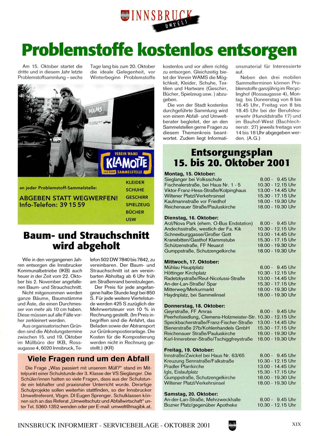 INNSBRUCK INFORMIERT - SERVICEBEILAGE - OKTOBER 2001