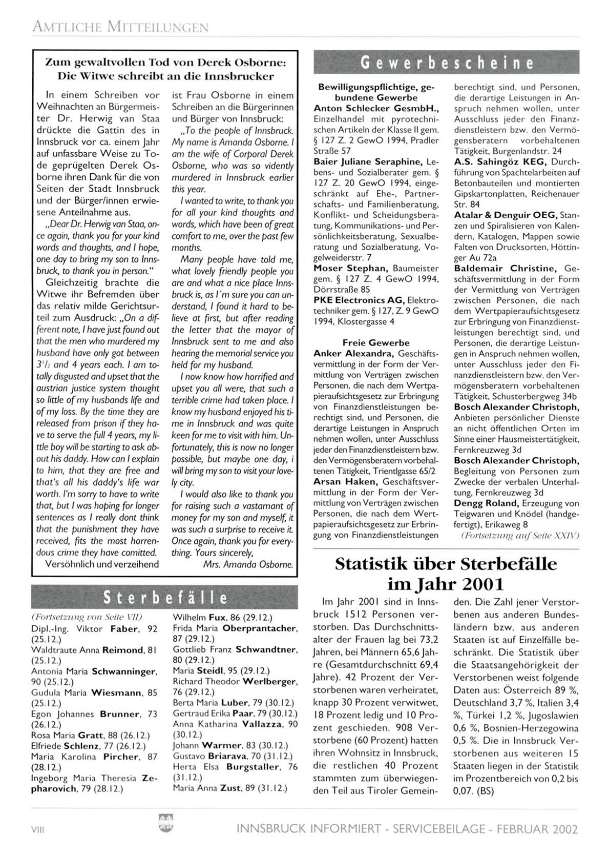 INNSBRUCK INFORMIERT - SERVICEBEILAGE - FEBRUAR 2002