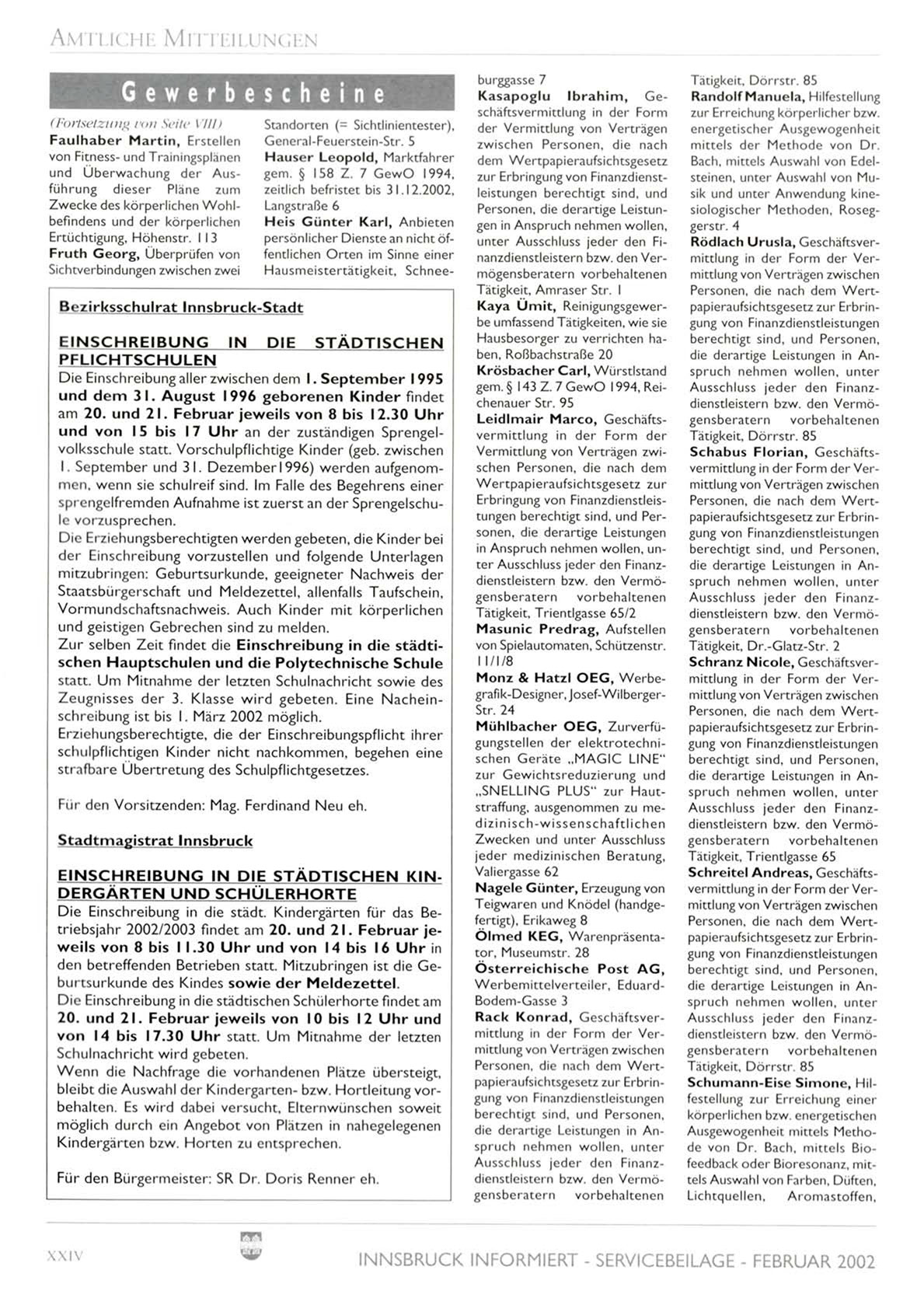 INNSBRUCK INFORMIERT - SERVICEBEILAGE - FEBRUAR 2002
