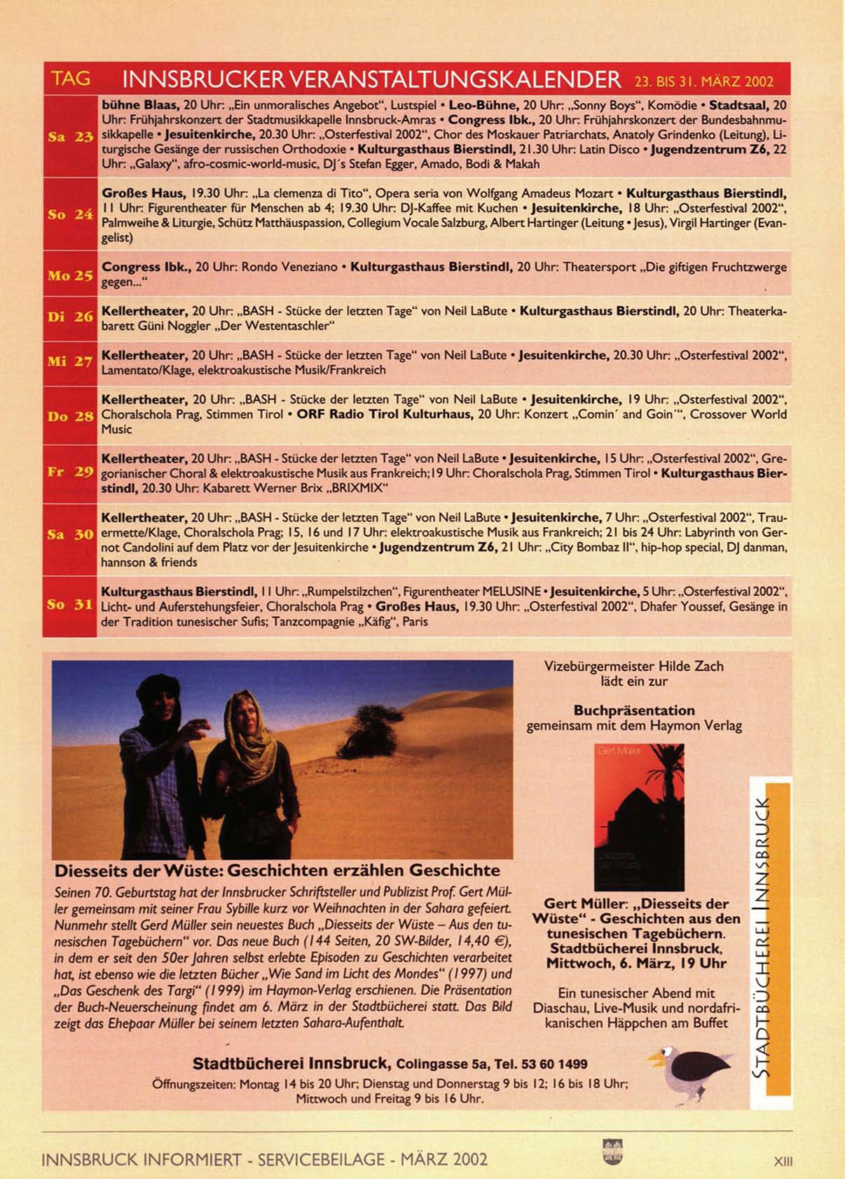 INNSBRUCKER VERANSTALTUNGSKALENDER 23.BIS31.MÄRZ2002