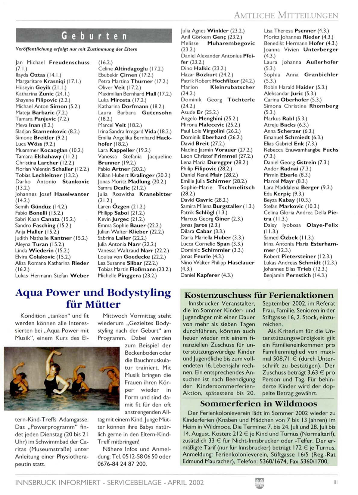 INNSBRUCK INFORMIERT - SERVICEBEILAGE -APRIL 2002