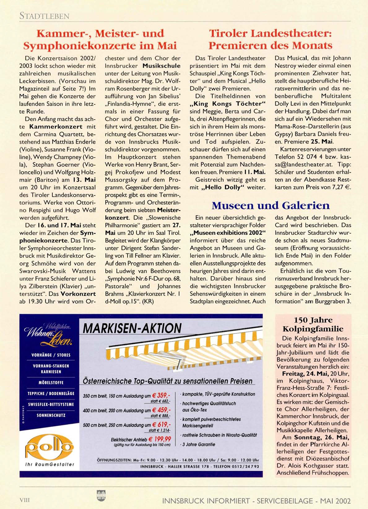 INNSBRUCK INFORMIERT - SERVICEBEILAGE - MAI 2002