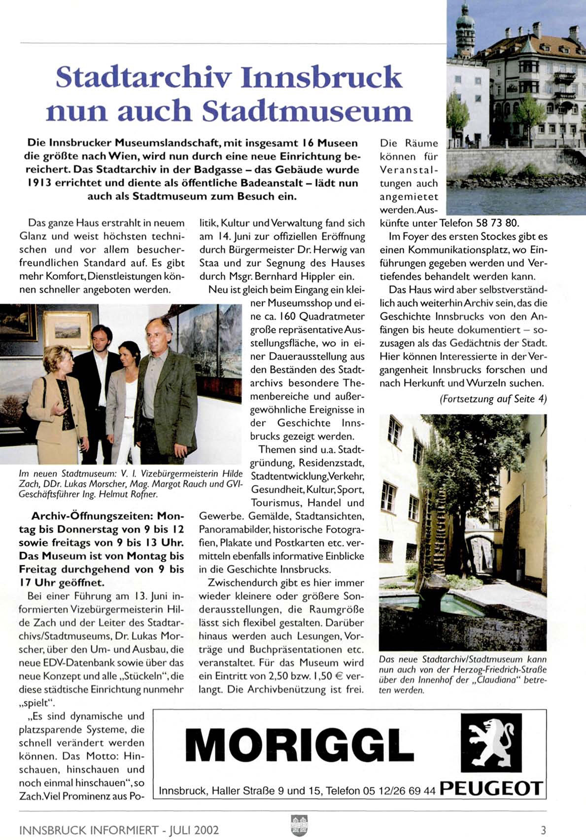 Geschichte Innsbrucks von den Anfängen bis heute dokumentiert — sozusagen als das Gedächtnis der Stadt.