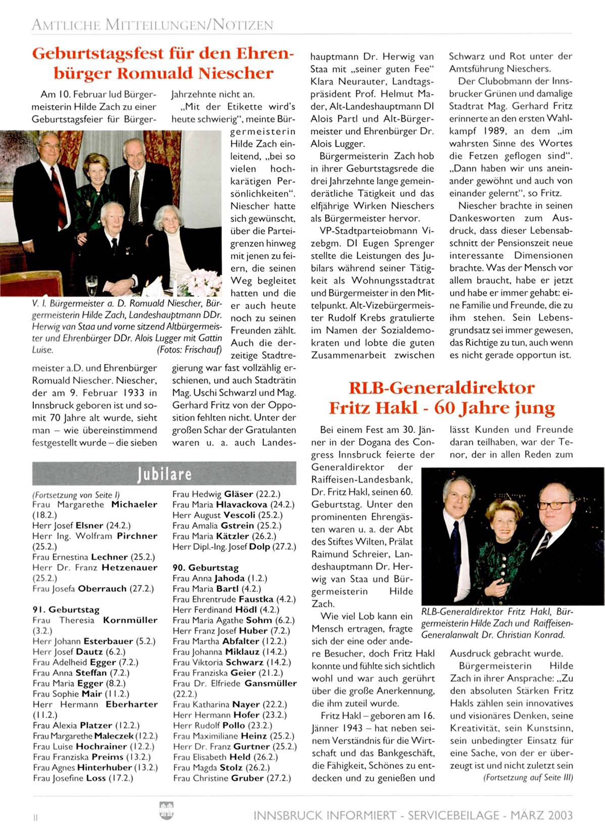 INNSBRUCK INFORMIERT - SERVICEBEILAGE - MÄRZ 2003
