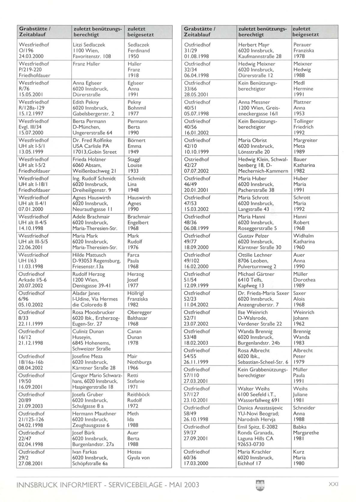 INNSBRUCK INFORMIERT - SERVICEBEILAGE - MAI 2003
