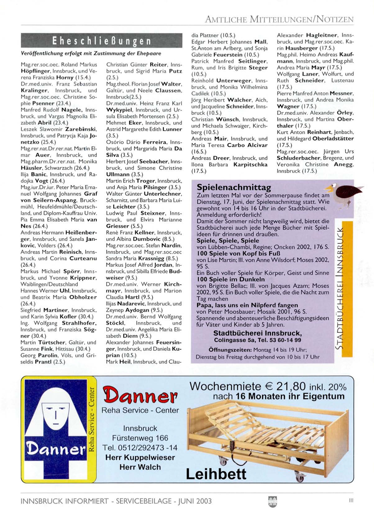 INNSBRUCK INFORMIERT - SERVICEBEILAGE - JUNI 2003