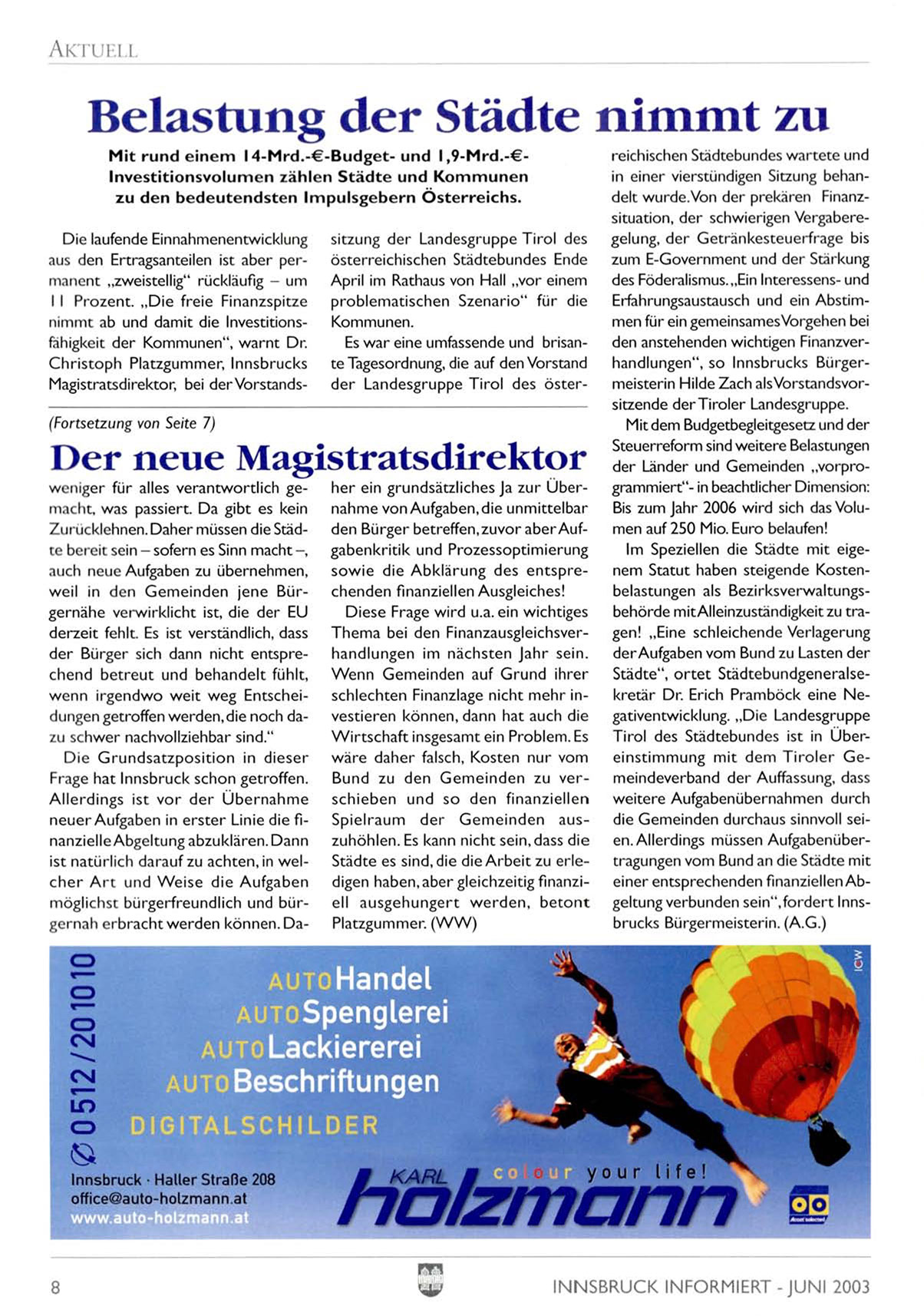 den anstehenden wichtigen Finanzverhandlungen", so Innsbrucks Bürgermeisterin Hilde Zach alsVörstandsvorsitzende derTiroler Landesgruppe.