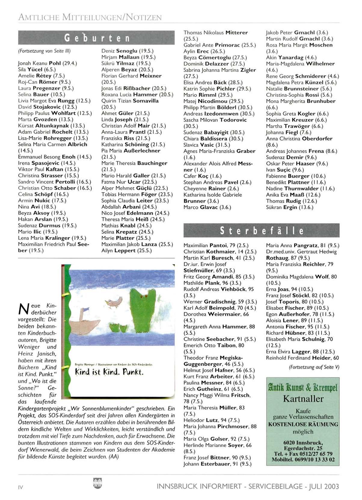 INNSBRUCK INFORMIERT - SERVICEBEILAGE -JULI 2003