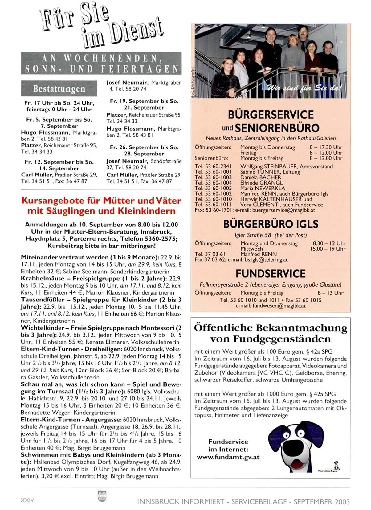 INNSBRUCK INFORMIERT - SERVICEBEILAGE - SEPTEMBER 2003