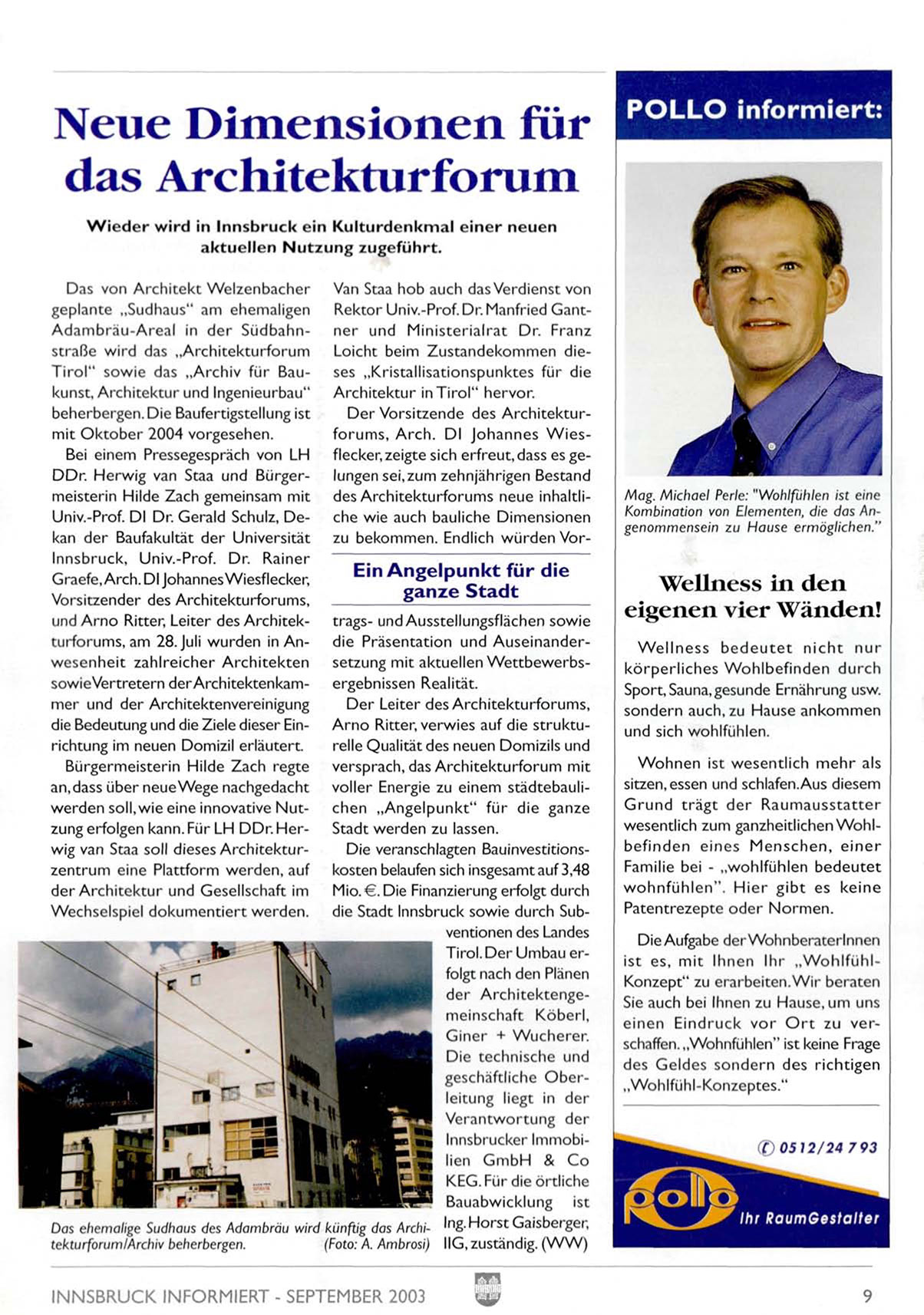 INNSBRUCK INFORMIERT - SEPTEMBER 2003