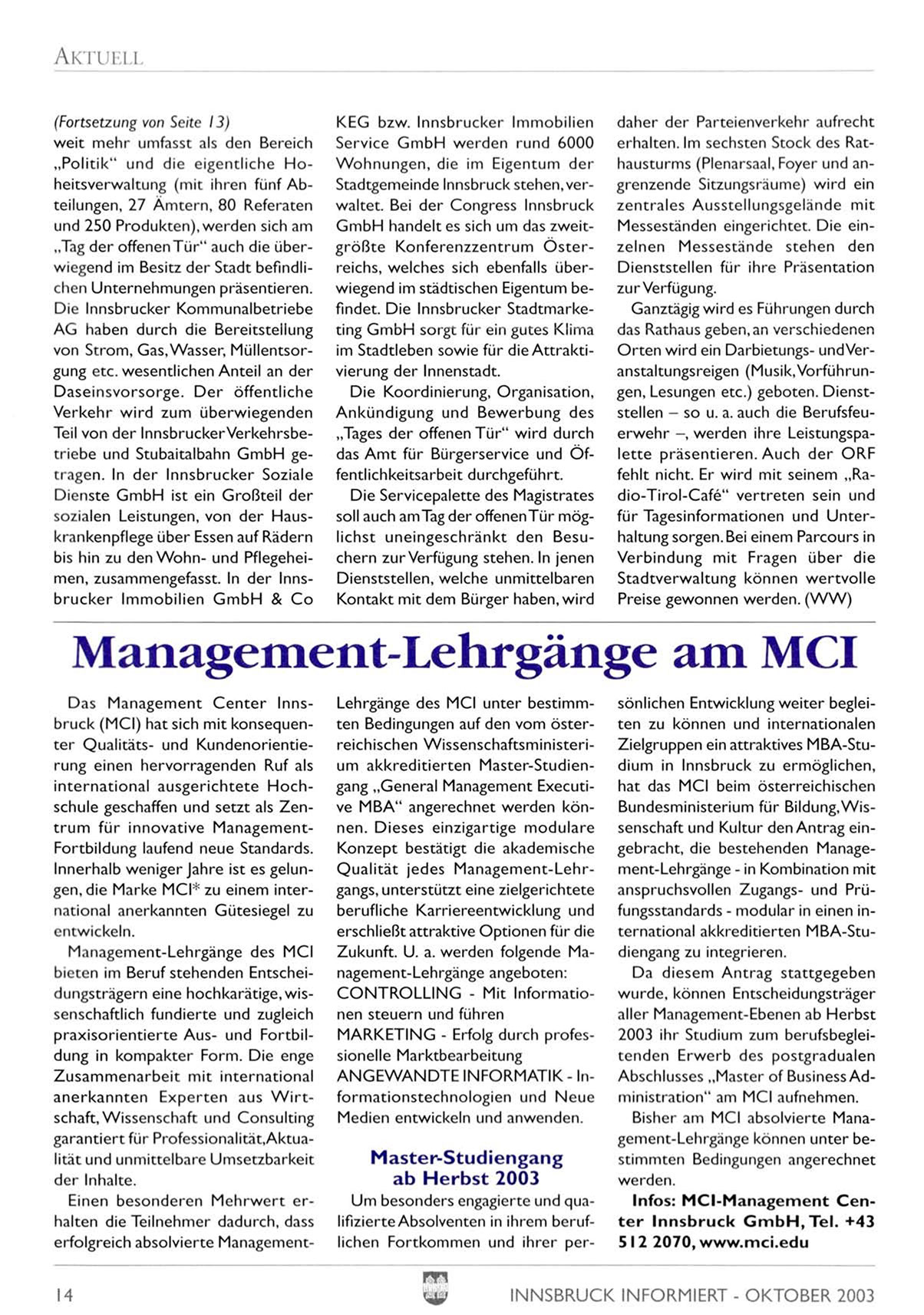 INNSBRUCK INFORMIERT - OKTOBER 2003