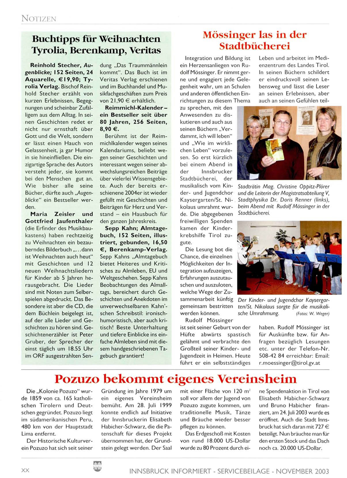 INNSBRUCK INFORMIERT - SERVICEBEILAGE - NOVEMBER 2003