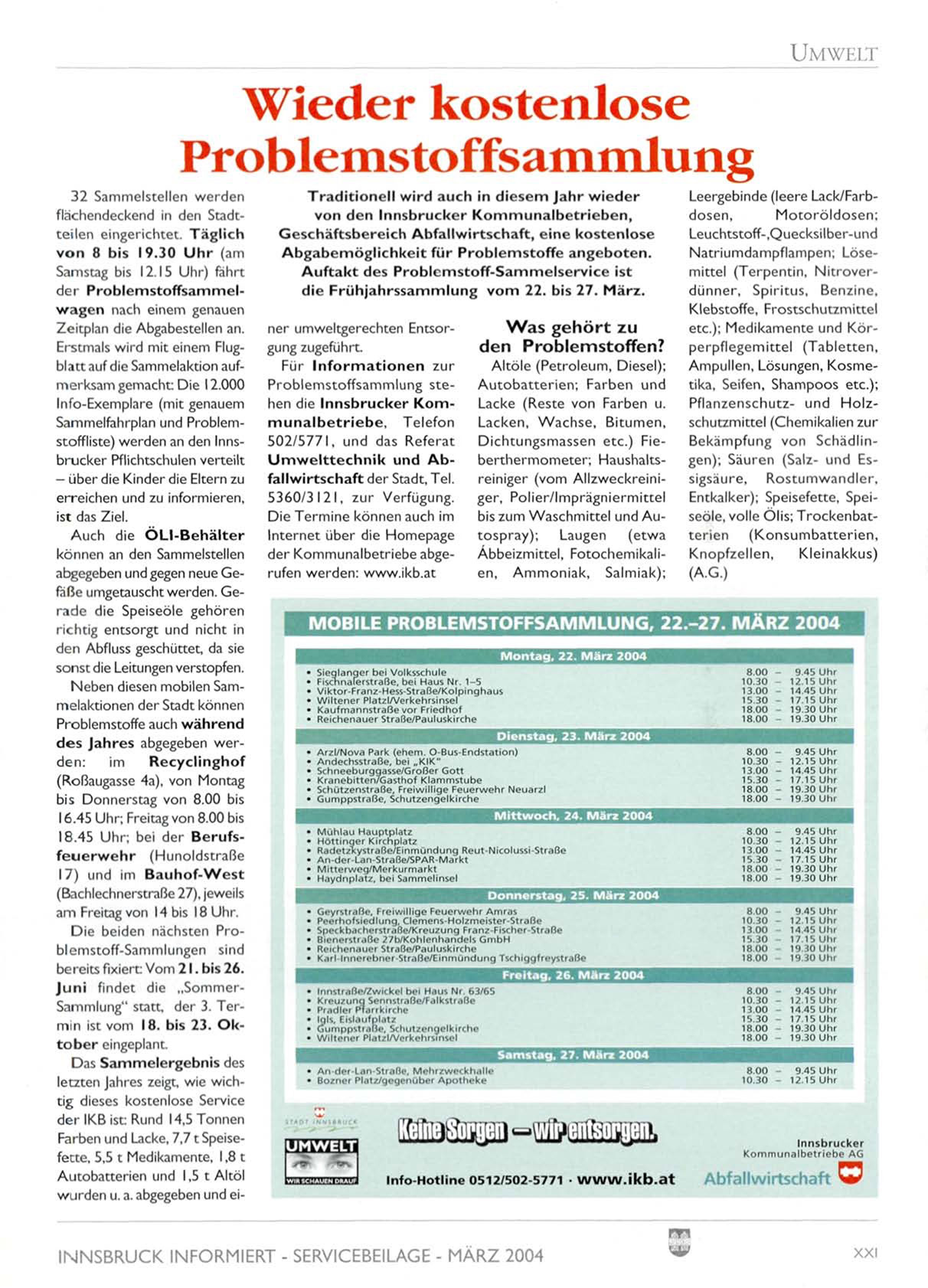 INNSBRUCK INFORMIERT - SERVICEBEILAGE - MÄRZ 2004