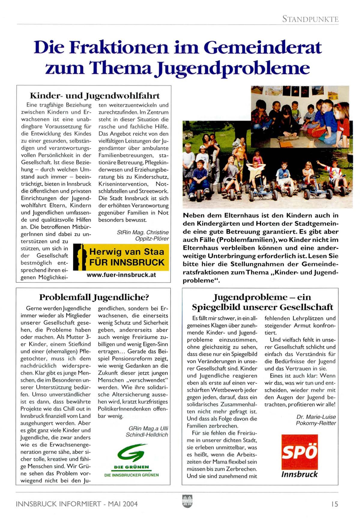 b i t t e hier die S t e l l u n g n a h m e n d e r G e m e i n d e ratsfraktionen z u m T h e m a ,,Kinder- und Jugendprobleme".