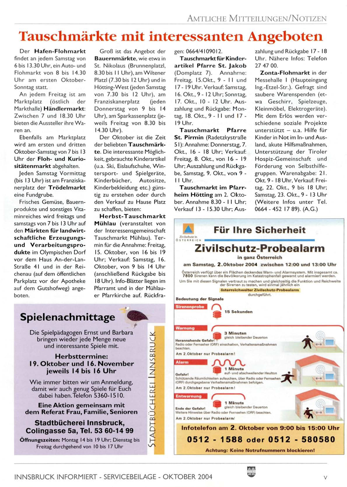 INNSBRUCK INFORMIERT - SERVICEBEILAGE - OKTOBER 2004