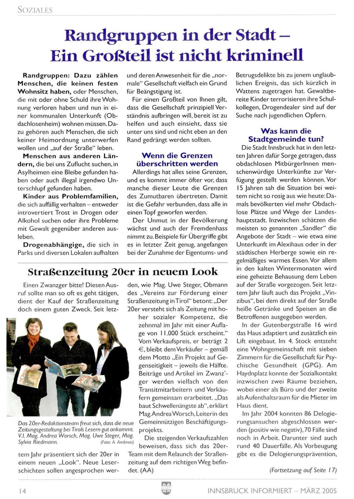Straßenzeitung i n T i r o l " betont: ,,Der