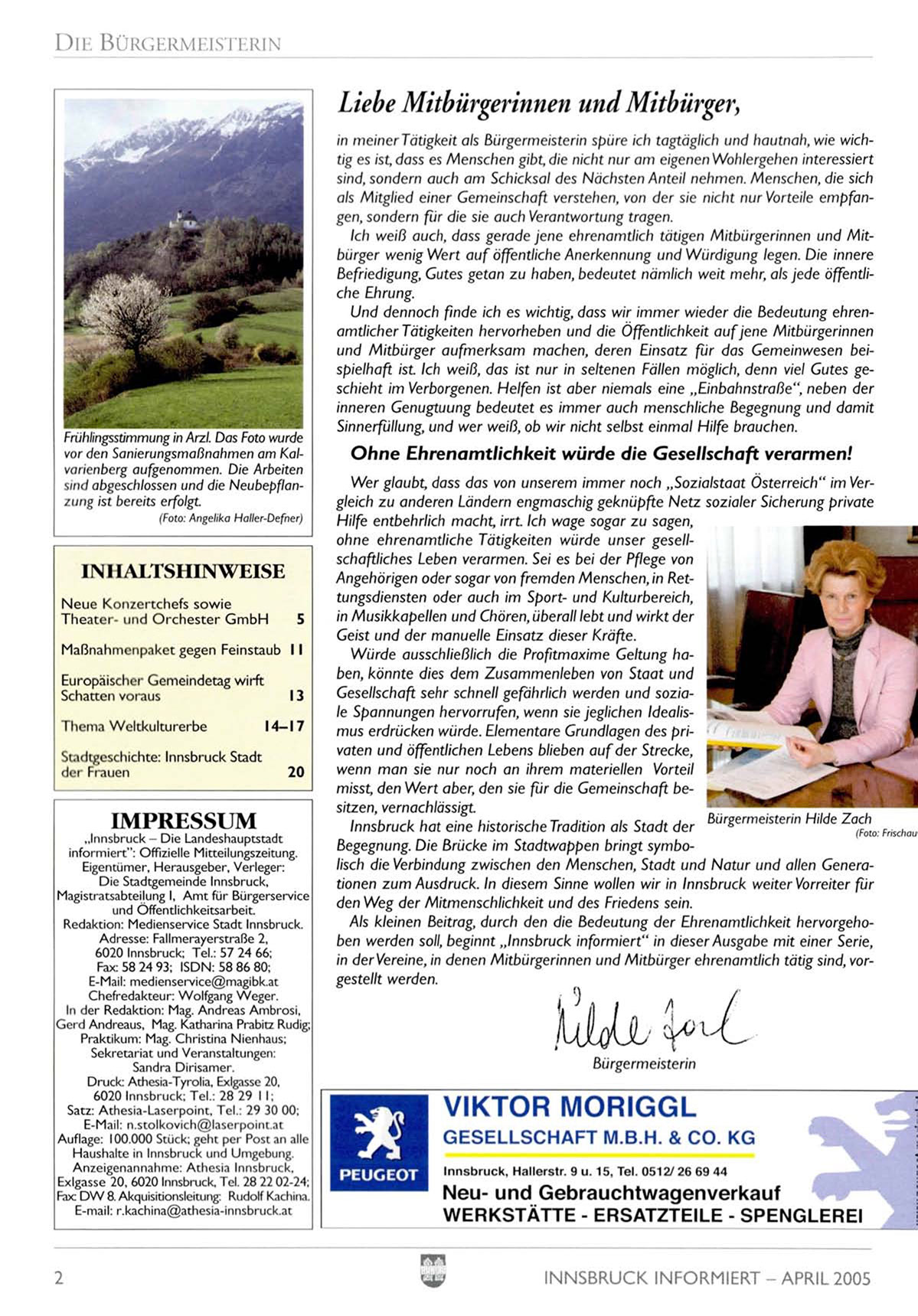 Als kleinen Beitrag, durch den die Bedeutung der Ehrenamtlichkeit hervorgehoben werden soll, beginnt „Innsbruck informiert" in dieser Ausgabe mit einer Serie,