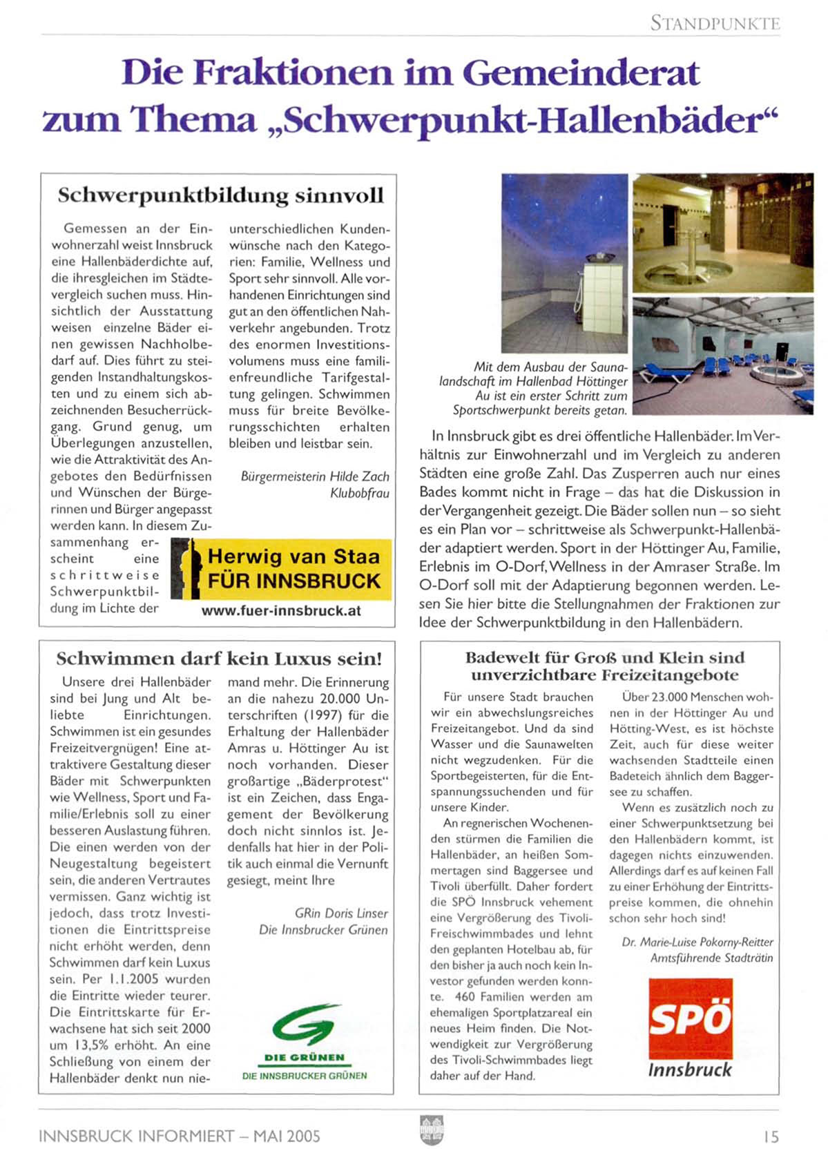 In I n n s b r u c k g i b t es d r e i öffentliche Hallenbäder. Im Verhältnis z u r E i n w o h n e r z a h l u n d i m Vergleich zu a n d e r e n