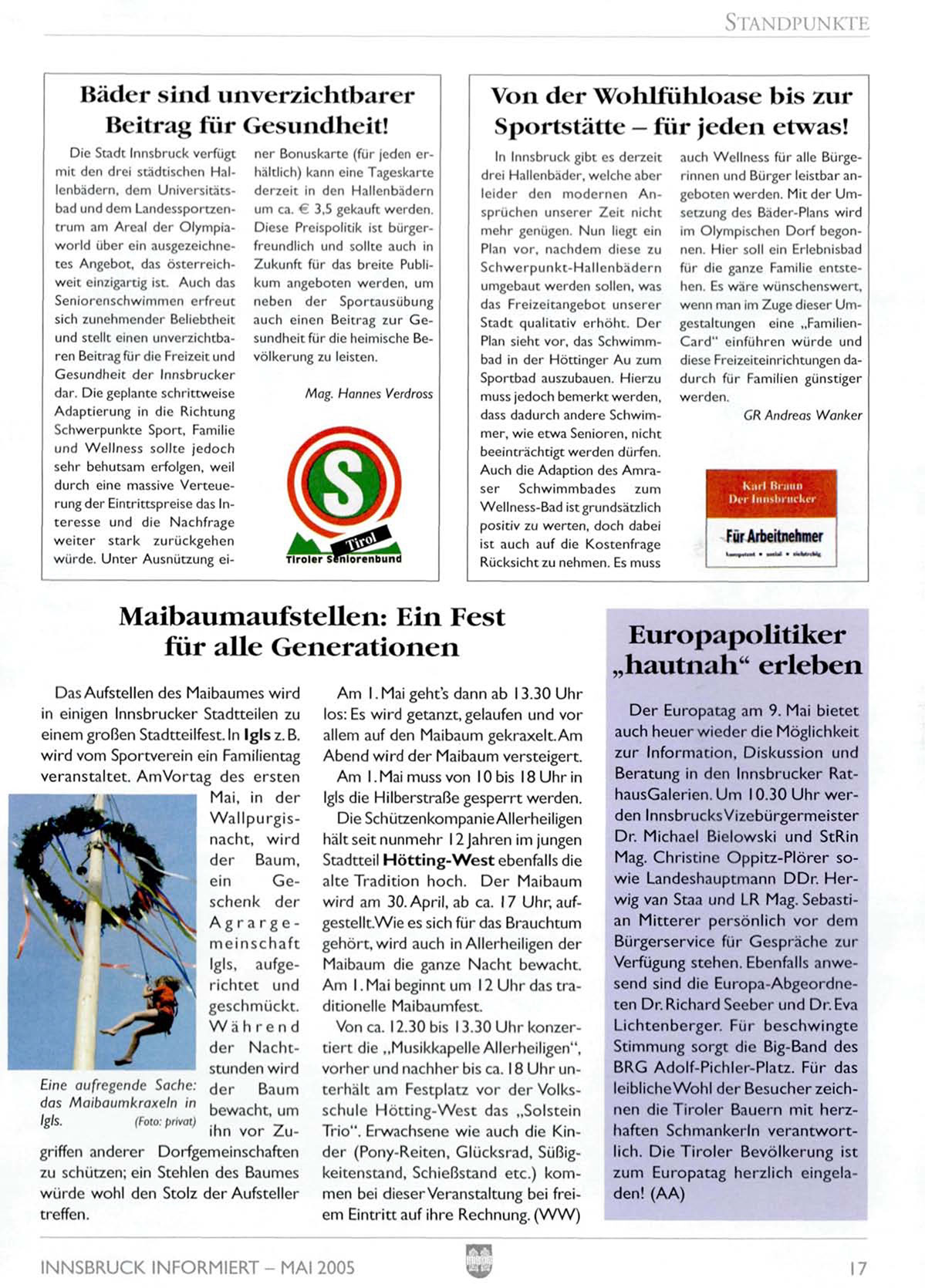 mit den drei städtischen Hallenbadern, dem Universitätsbad und dem Landessportzentrum am Areal der Olympiaworld über ein ausgezeichnetes Angebot, das österreichweit einzigartig ist. Auch das