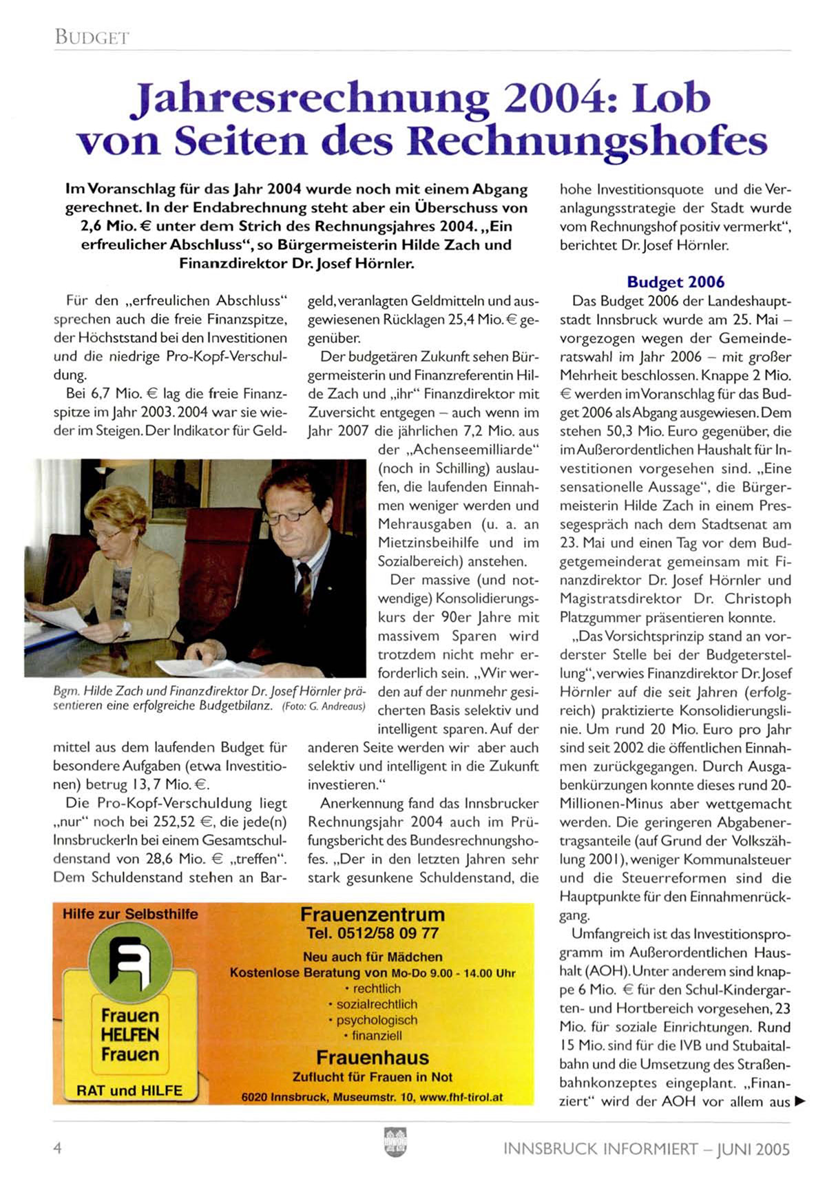 Das Budget 2006 der Landeshauptstadt Innsbruck wurde am 25. Mai vorgezogen wegen der Gemeinderatswahl im Jahr 2006 - mit großer