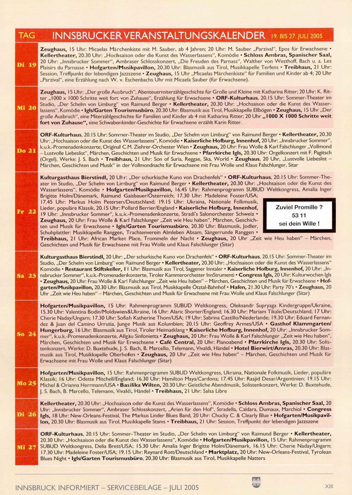 INNSBRUCKER VERANSTALTUNGSKALENDER 19.BIS 27 juu 2005