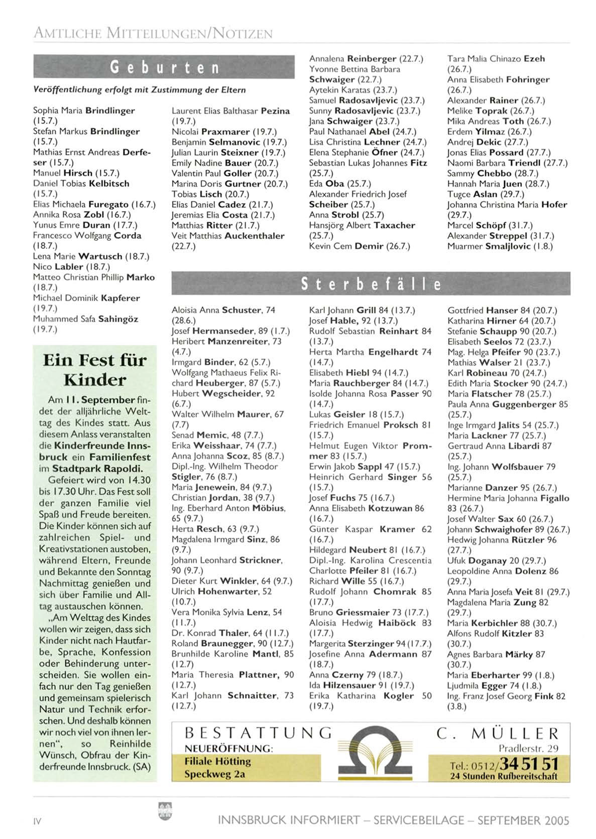 INNSBRUCK INFORMIERT - SERVICEBEILAGE - SEPTEMBER 2005