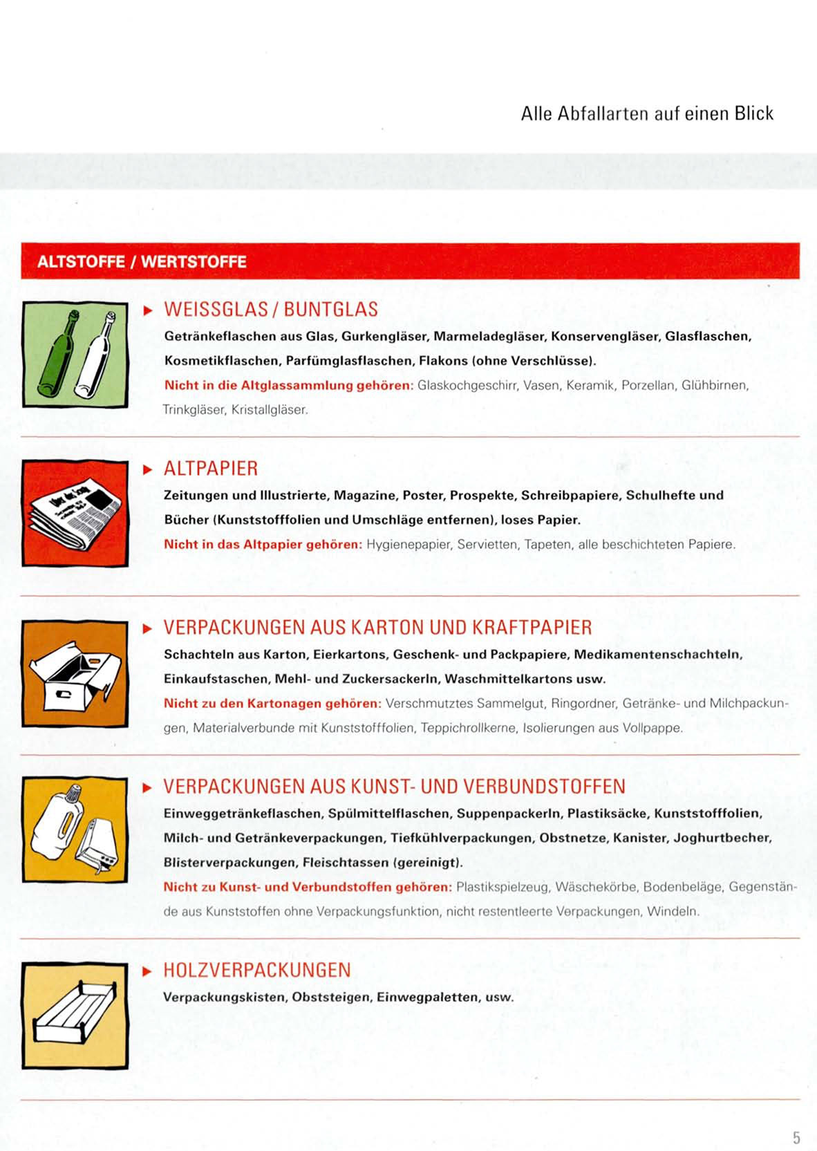Nicht zu Kunst- und Verbundstoffen gehören: Plastikspielzeug, Wäschekörbe, Bodenbeläge, Gegenstände aus Kunststoffen ohne Verpackungsfunktion, nicht restentleerte Verpackungen, Windeln.