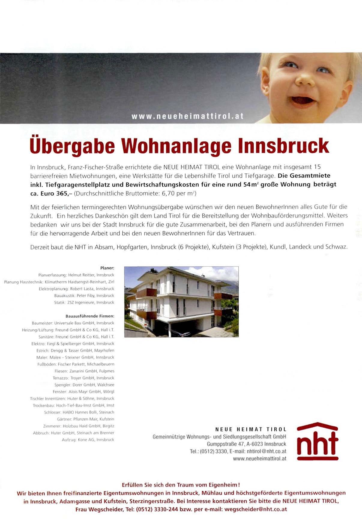 Derzeit baut die NHT in Absam, Hopfgarten, Innsbruck (6 Projekte), Kufstein (3 Projekte), Kundl, Landeck und Schwaz.