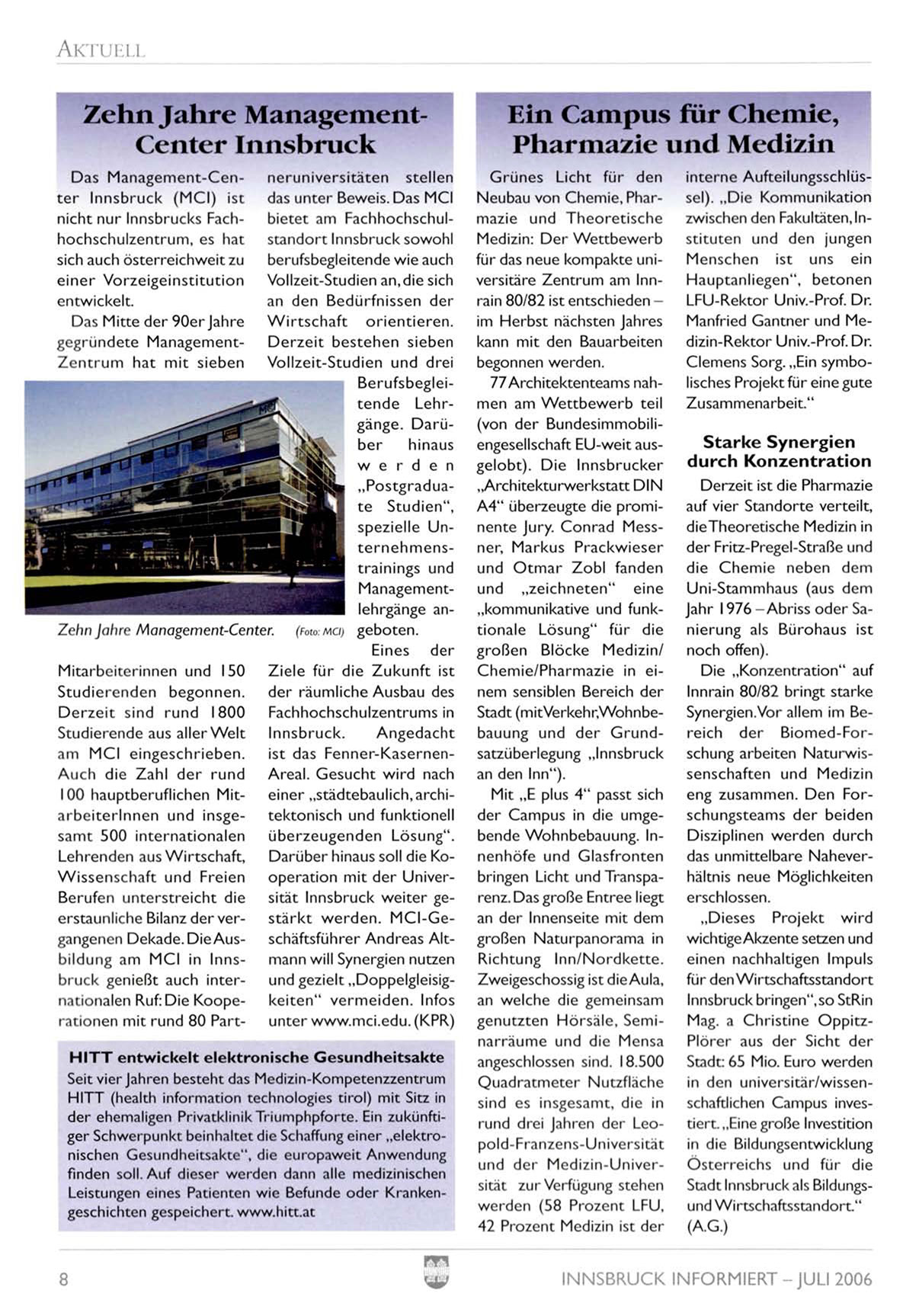 si tat Innsbruck weiter gestärkt w e r d e n . MCI-Geerstaunliche Bilanz der vergangenen Dekade. Die Ausschäftsführer Andreas Altbildung am MCI in Innsmann will Synergien nutzen