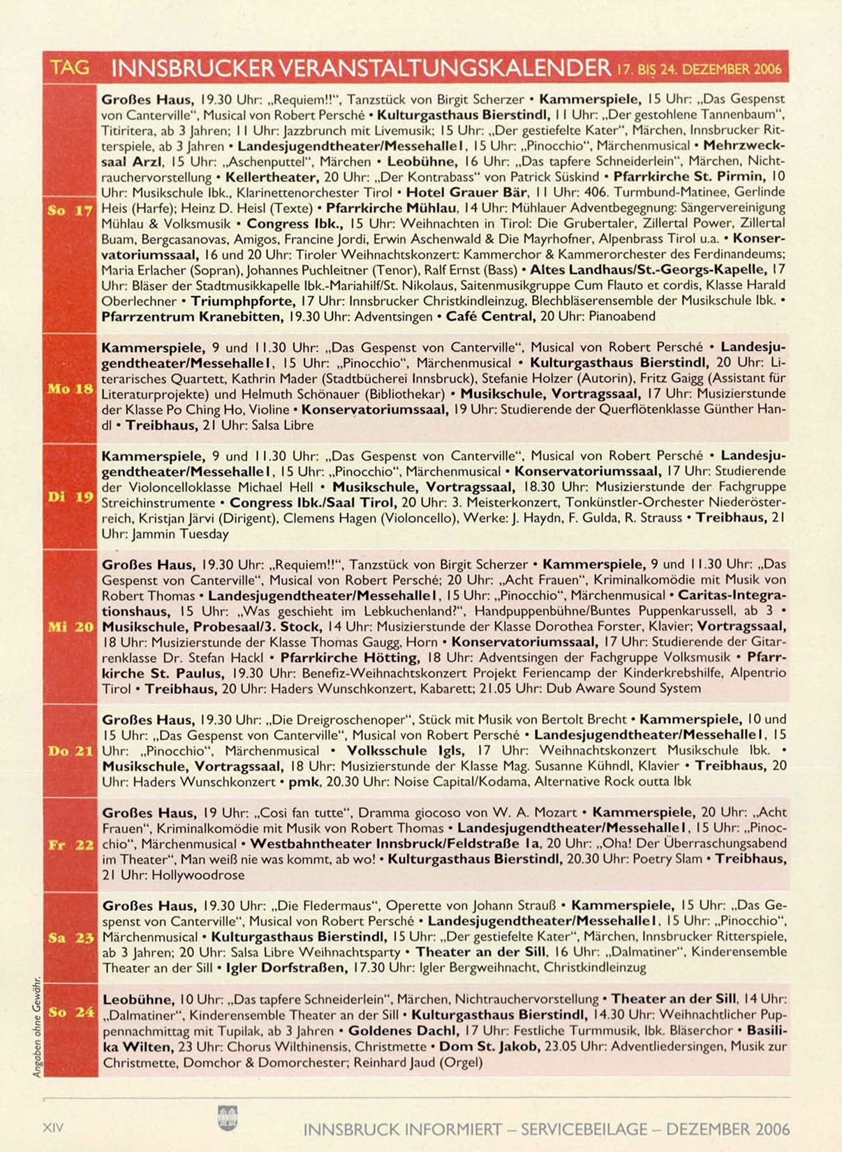 INNSBRUCKER VERANSTALTUNGSKALENDER >?, BIS 24. DEZEMBER2006