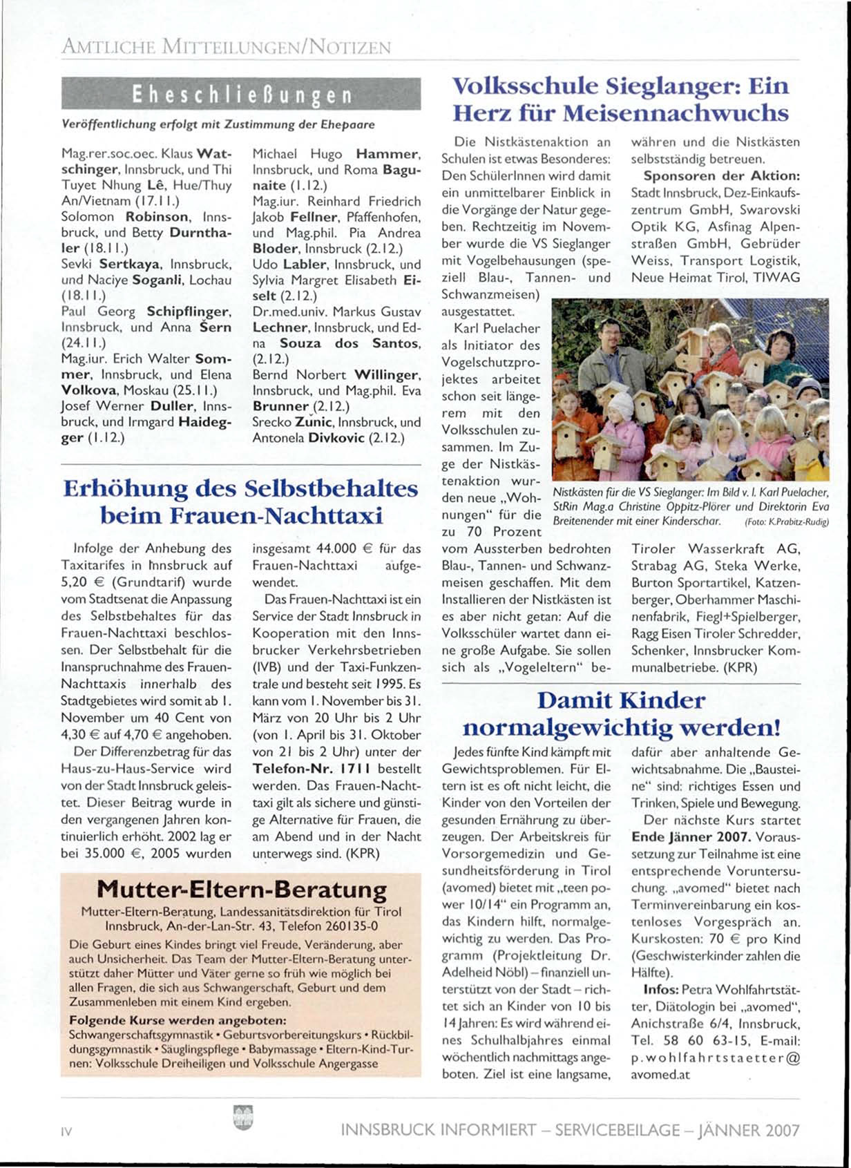 INNSBRUCK INFORMIERT - SERVICEBEILAGE - JÄNNER 2007