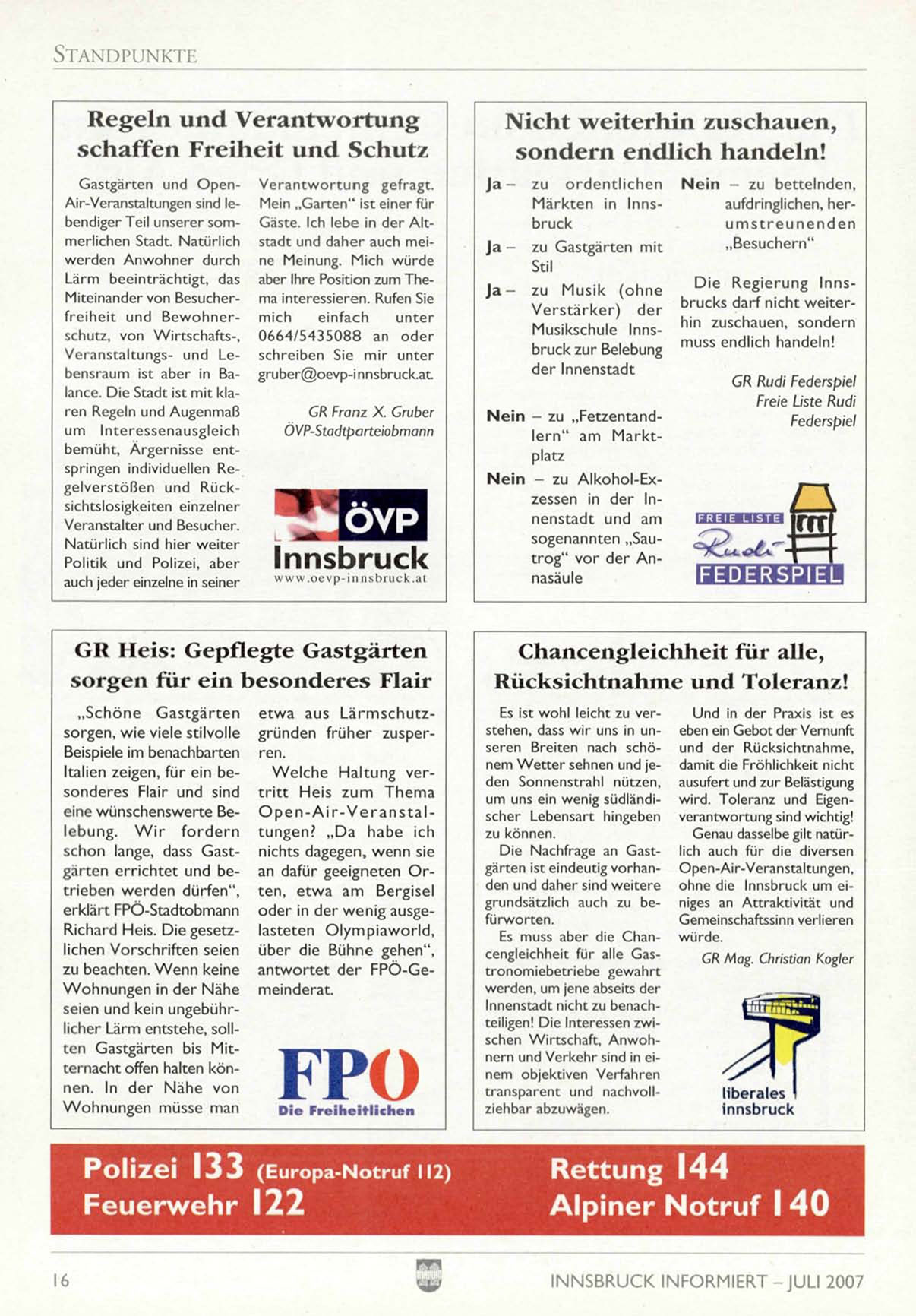 Gastgärten und OpenAir-Veranstaltungen sind lebendiger Teil unserer sommerlichen Stadt. Natürlich