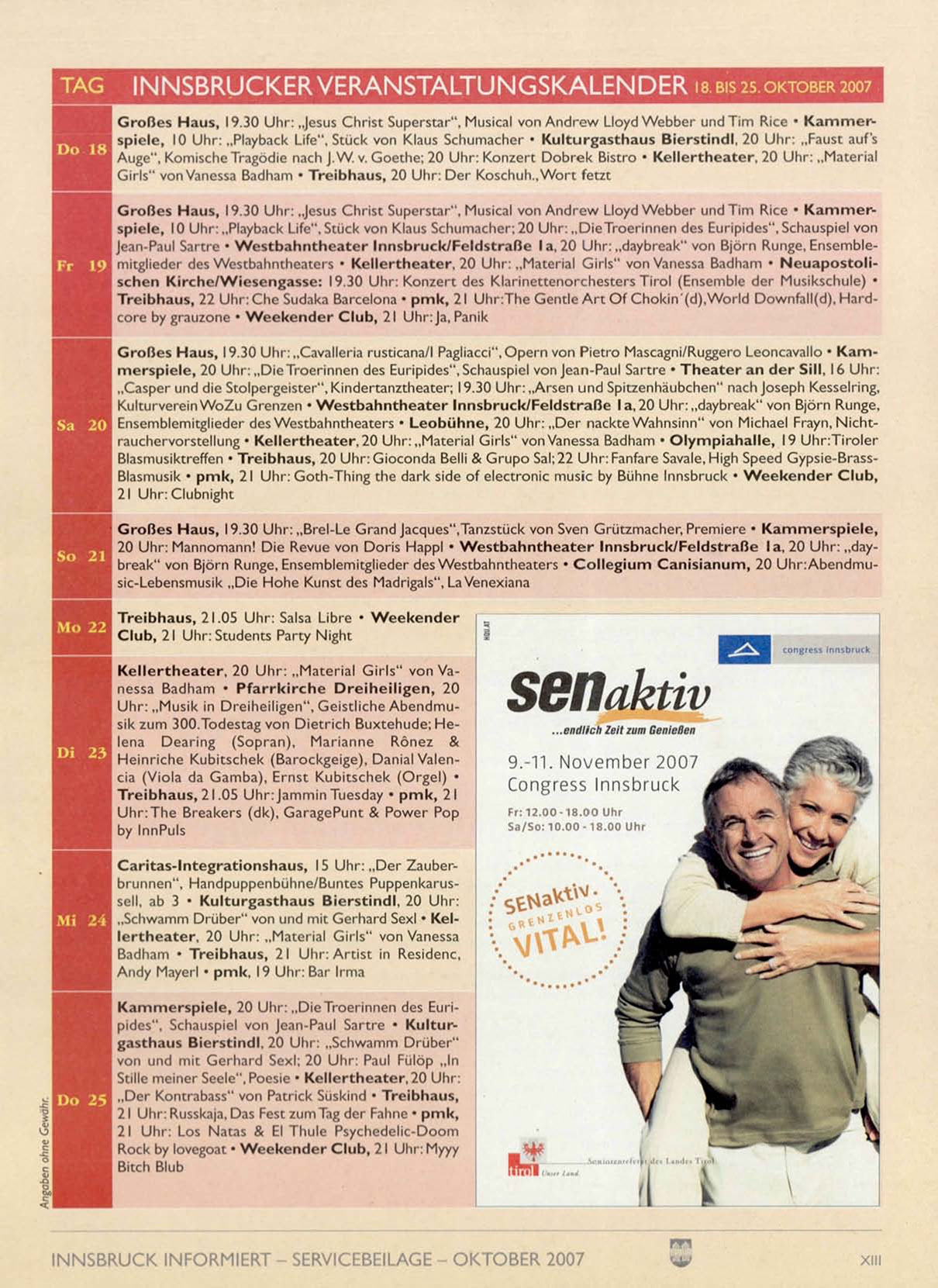 INNSBRUCKER VERANSTALTUNGSKALENDER is. BIS 25. OKTOBER 2007