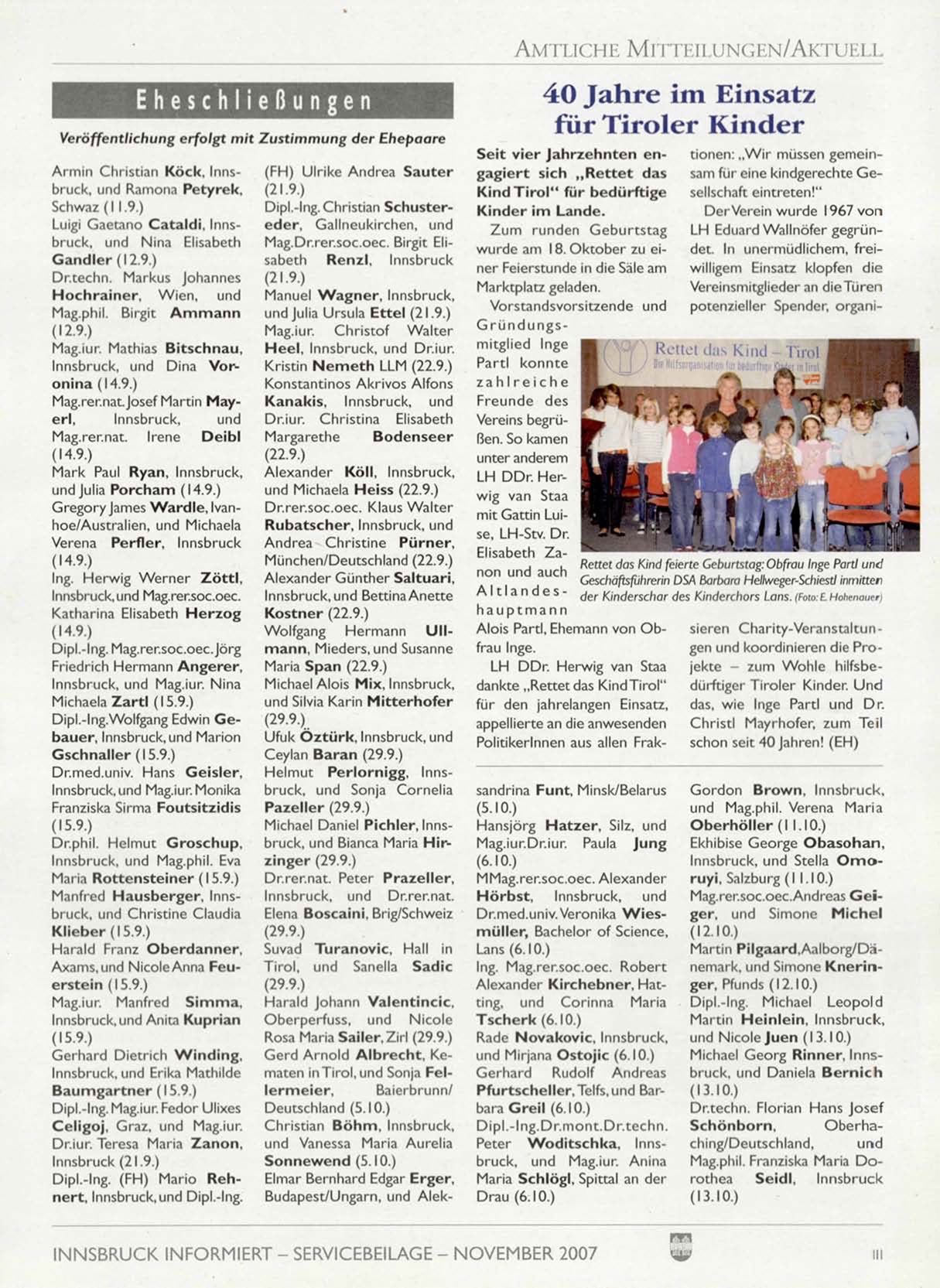 INNSBRUCK INFORMIERT - SERVICEBEILAGE - NOVEMBER 2007